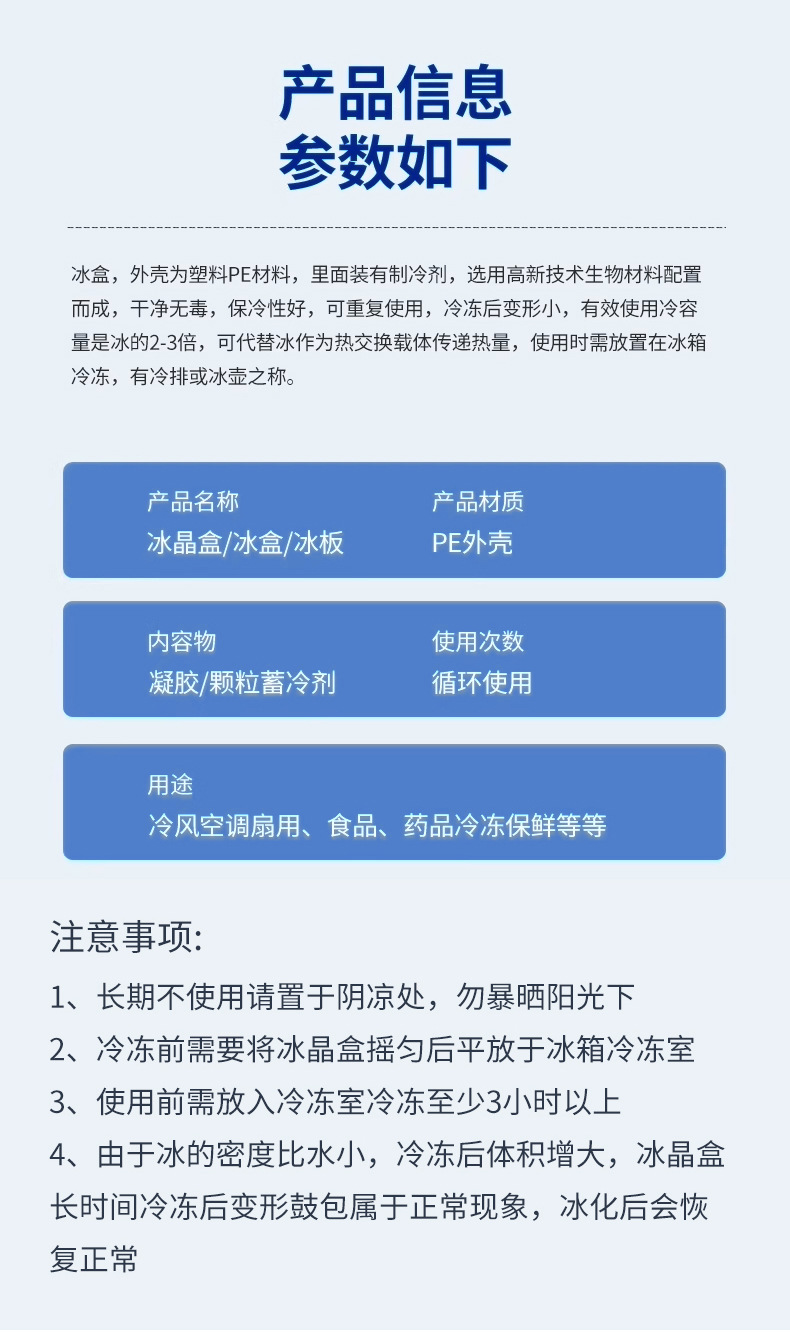 반복적으로 사용되는 물이 채워진 얼음 결정 상자, 냉장 및 보존 에어컨 팬, 콜드 체인 냉장 저장 얼음판, 보온 상자, 판매대 및 배송스토어 가기