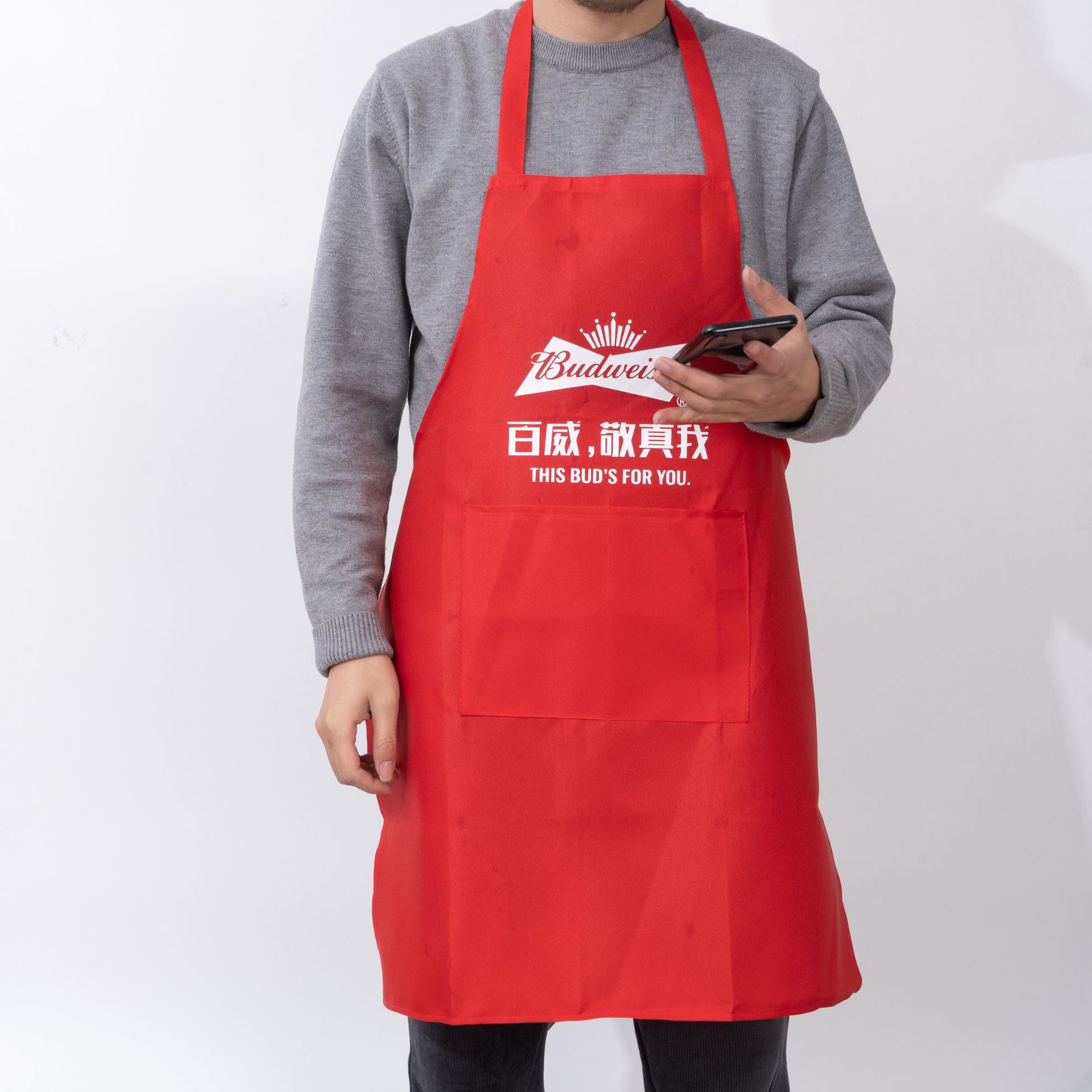 광고 앞치마 맞춤형 로고 방수 홀터넥 어깨 끈 선물 광고 케이터링 주방 폴리 에스터 앞치마 Ling