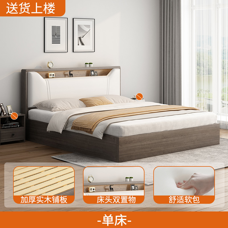 단단한 나무 침대 1.5m 가정용 침실 1.8x 2m 더블 침대 작은 아파트 임대 1.2m 싱글 침대스토어 가기