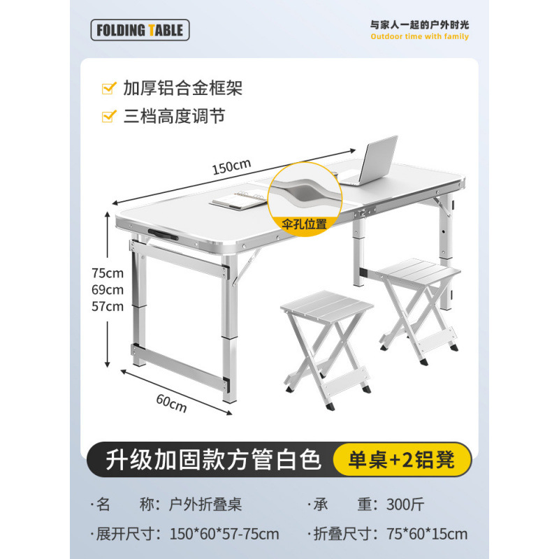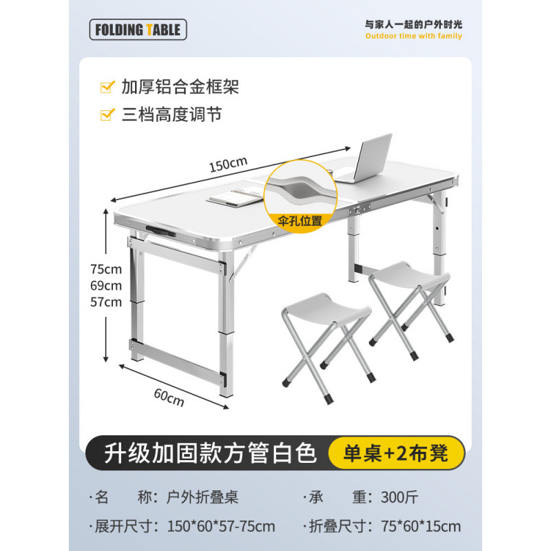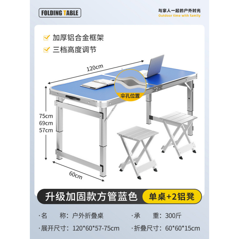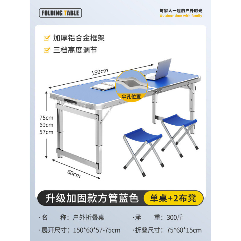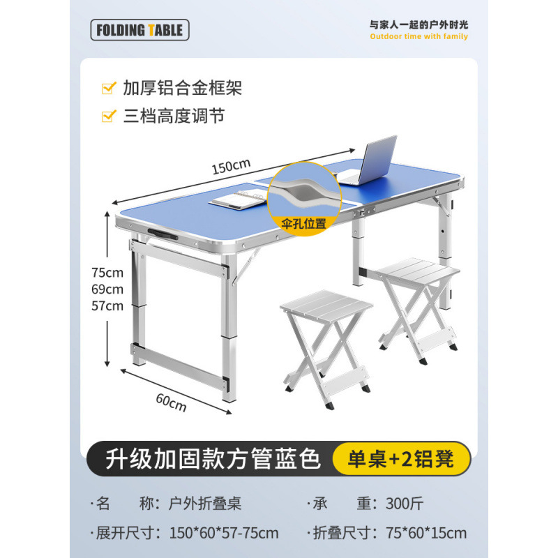 • [업그레이드 및 강화된 모델 150cm] 스카이블루 + 우산구멍이 있는 알루미늄 스툴 2개 ★ ⚑