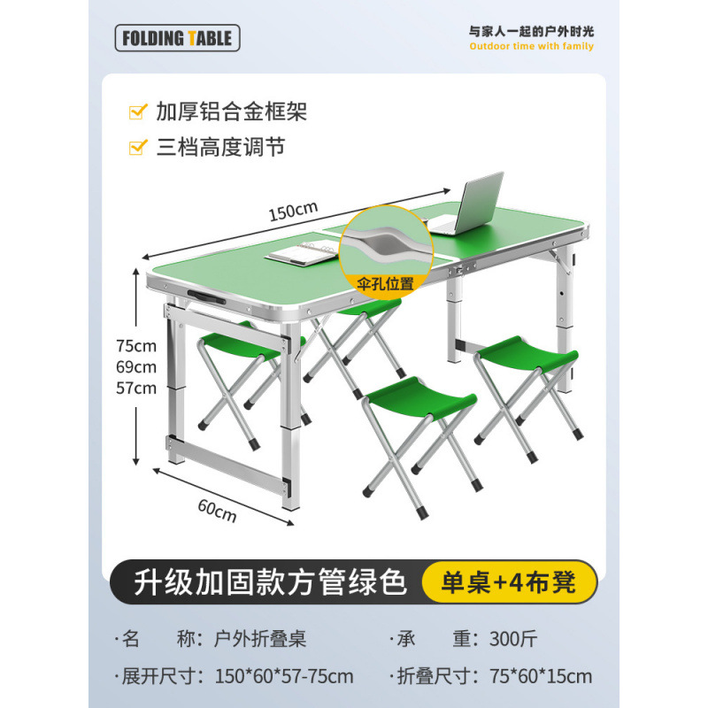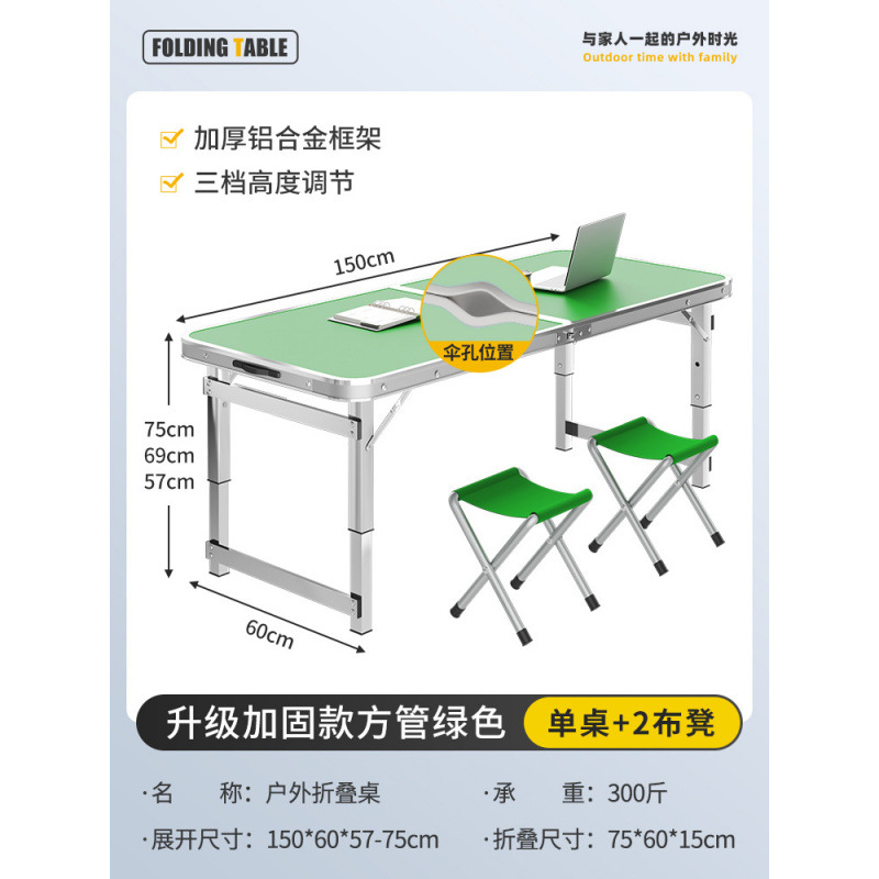 • [업그레이드 및 강화 버전 120cm] 프레쉬 그린 + 우산 구멍이 있는 알루미늄 스툴 2개★⚑