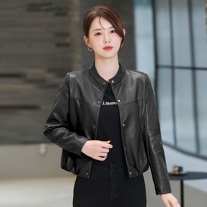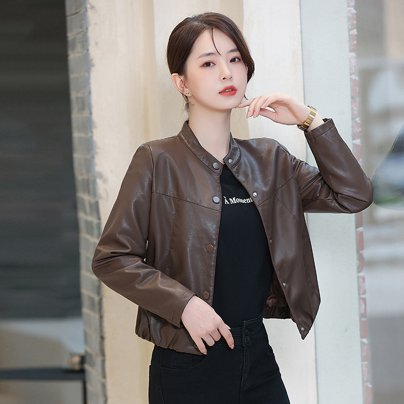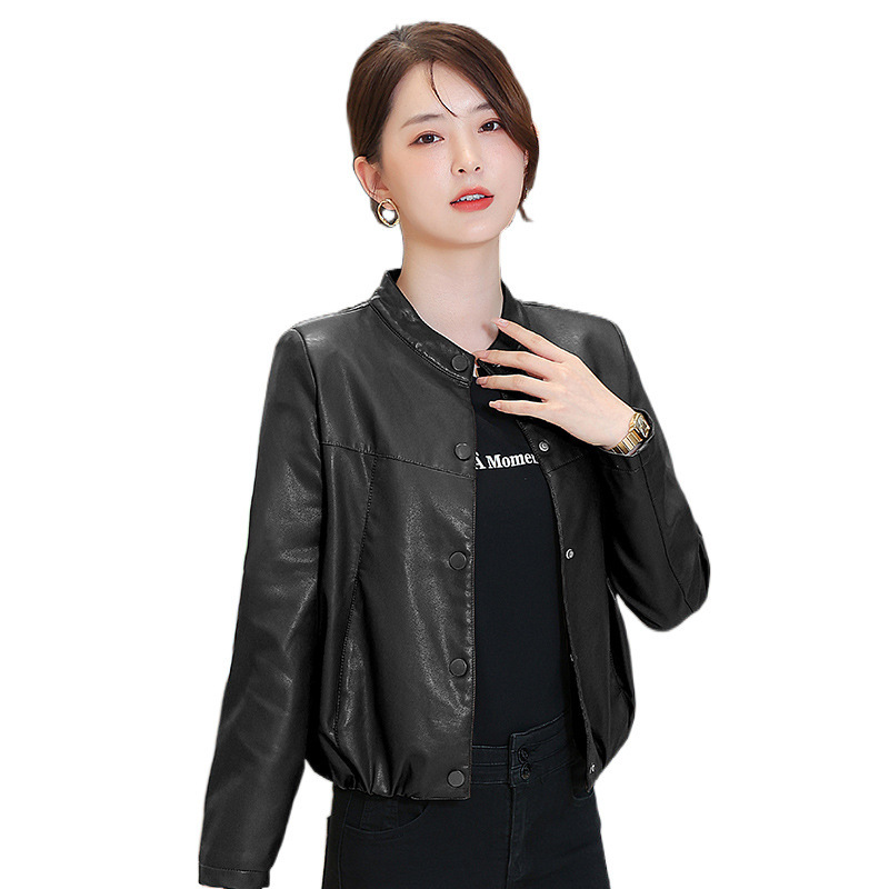 느슨한 슬림 가죽 자켓 여성 자켓 짧은 코트 2025 봄, 가을 새로운 한국 스타일 작은 캐주얼 PU 오토바이 자켓스토어 가기