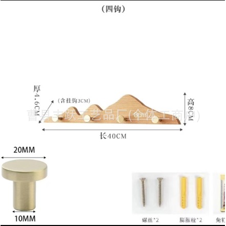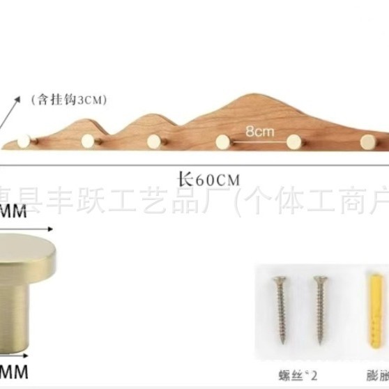 고급스러운 원목 벽걸이 선반, 후크 포함, 침실용, 무타공, 힐 모양의 긴 후크, 나무 벽걸이 선반