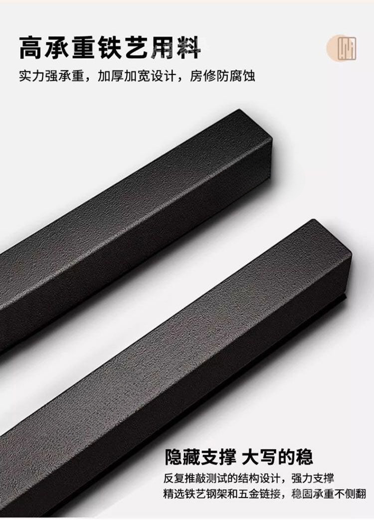 • 검은색 침대, 흰색 가방 + 두꺼운 철제 프레임