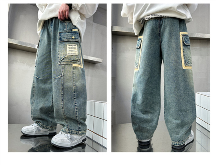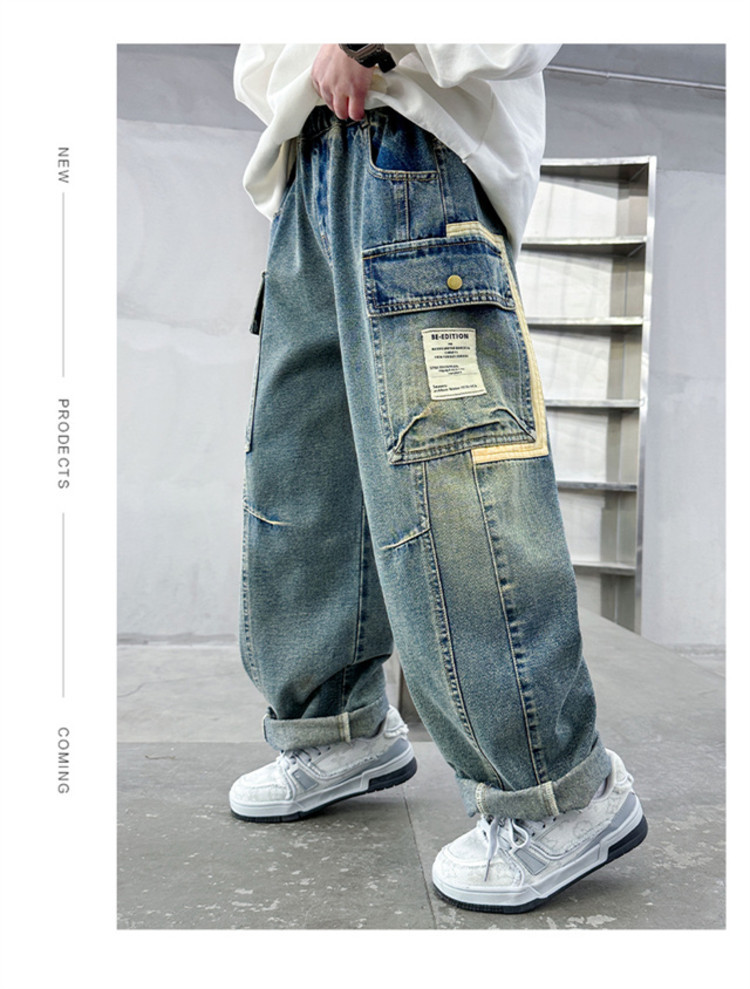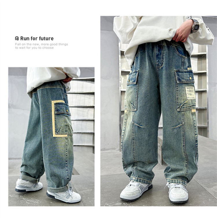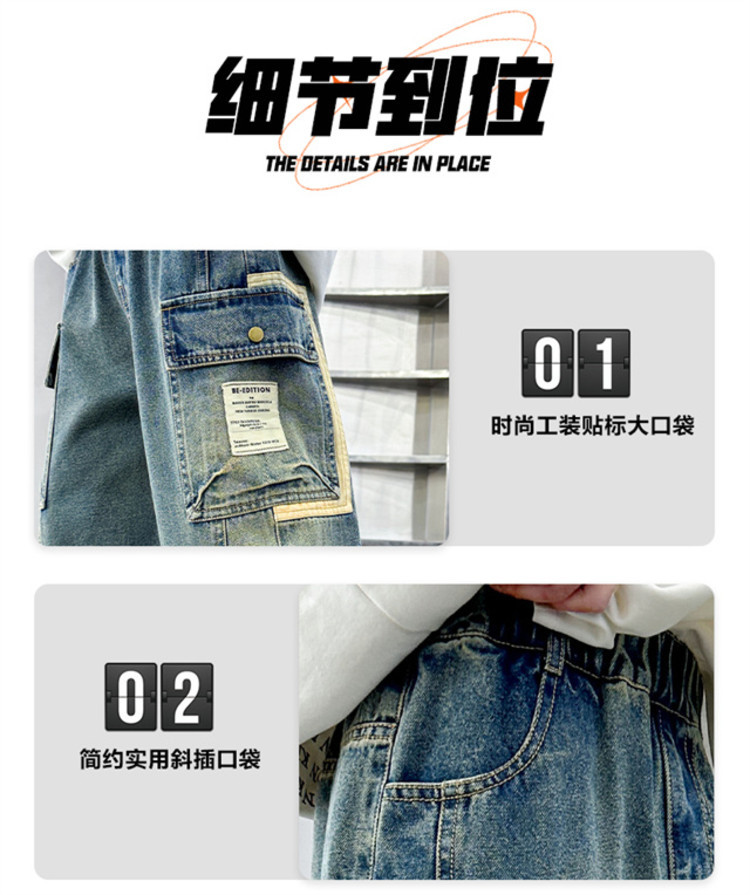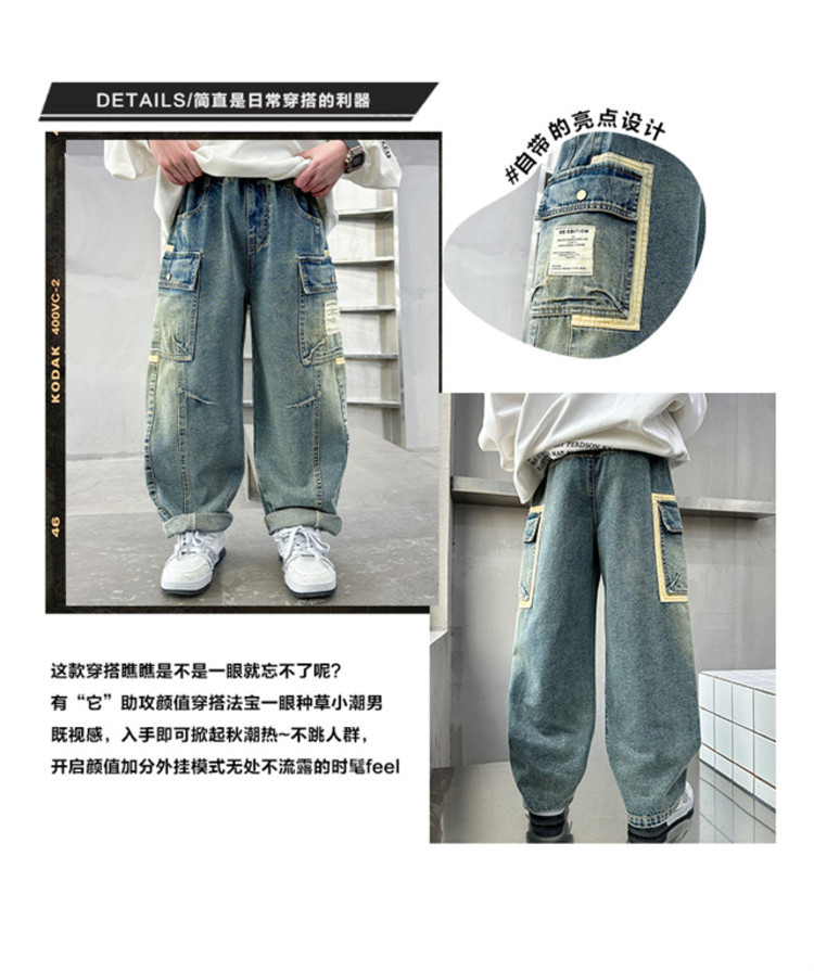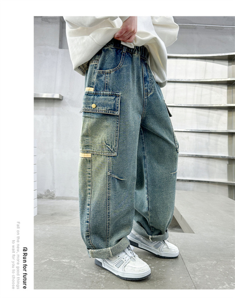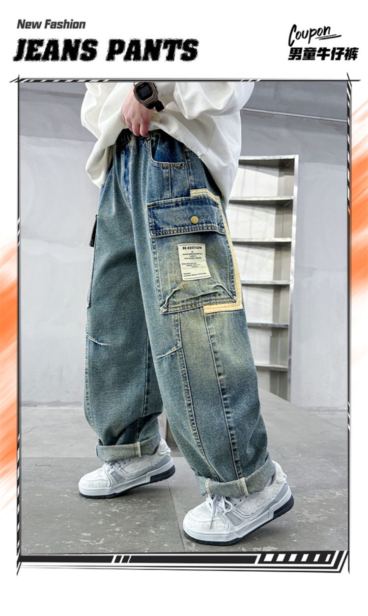 아동복 소년 봄 바지 2025 새로운 중대형 아동 봄, 가을 스트레이트 청바지 봄 소년 바지스토어 가기