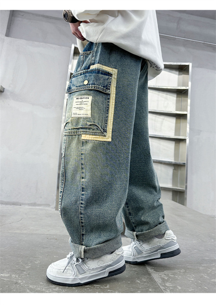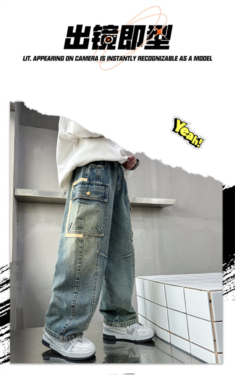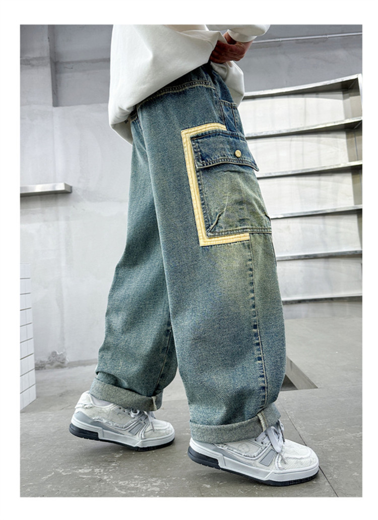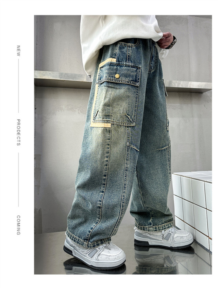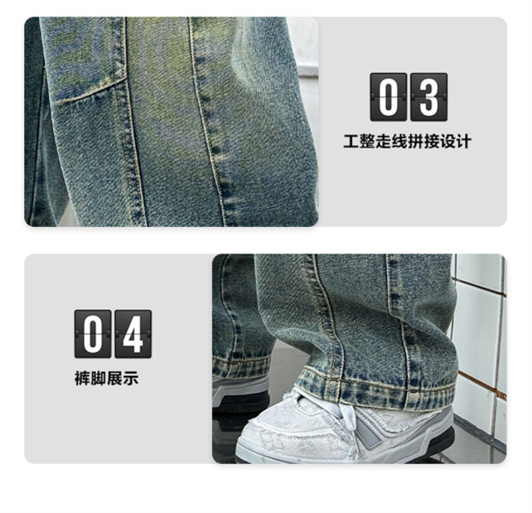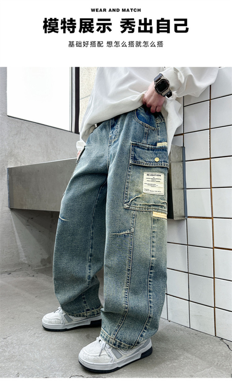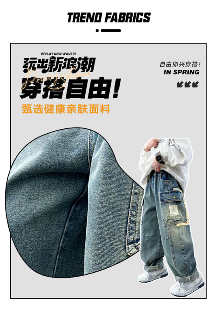 아동복 소년 봄 바지 2025 새로운 중대형 아동 봄, 가을 스트레이트 청바지 봄 소년 바지스토어 가기