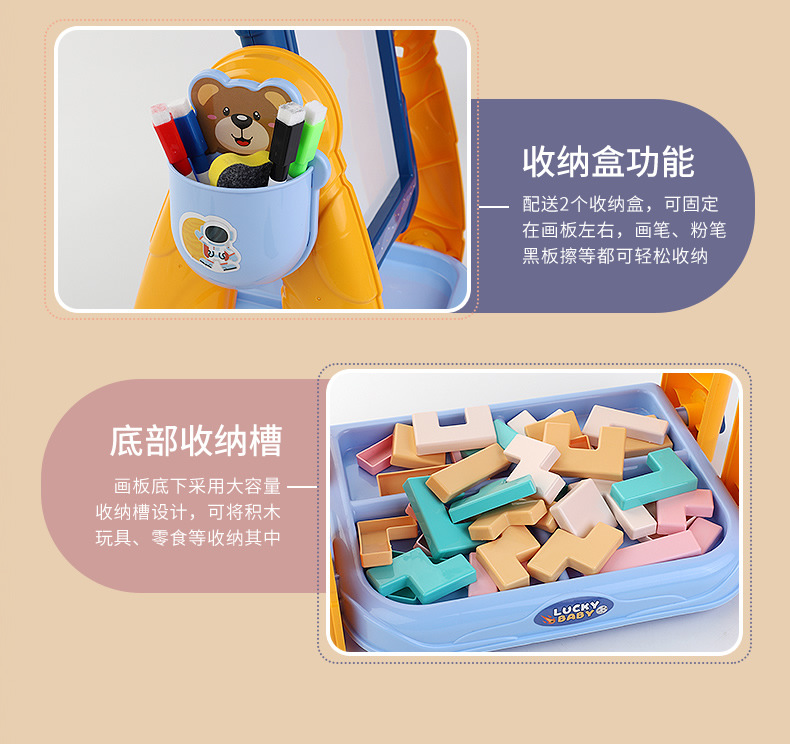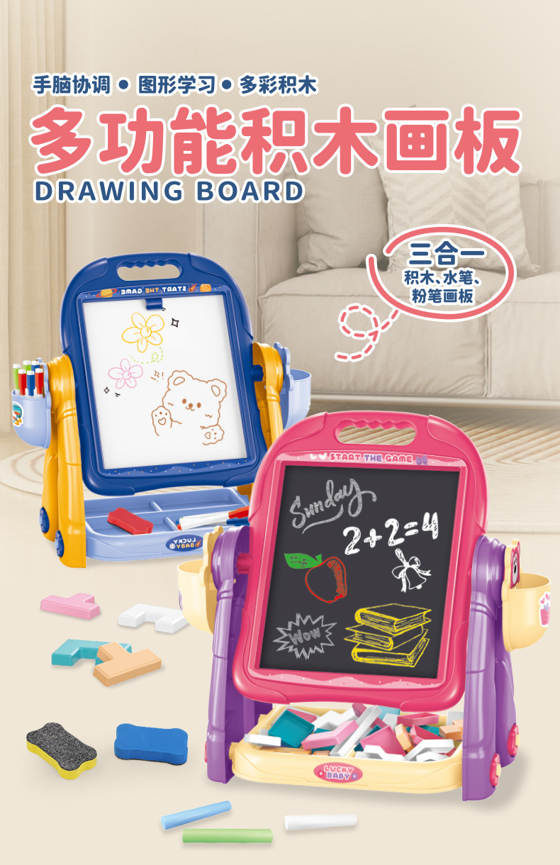 아이들의 다기능 빌딩 블록 드로잉 보드는 양면 드로잉 보드를 저장할 수 있습니다. 러시아 빌딩 블록 드로잉 보드 장난감스토어 가기