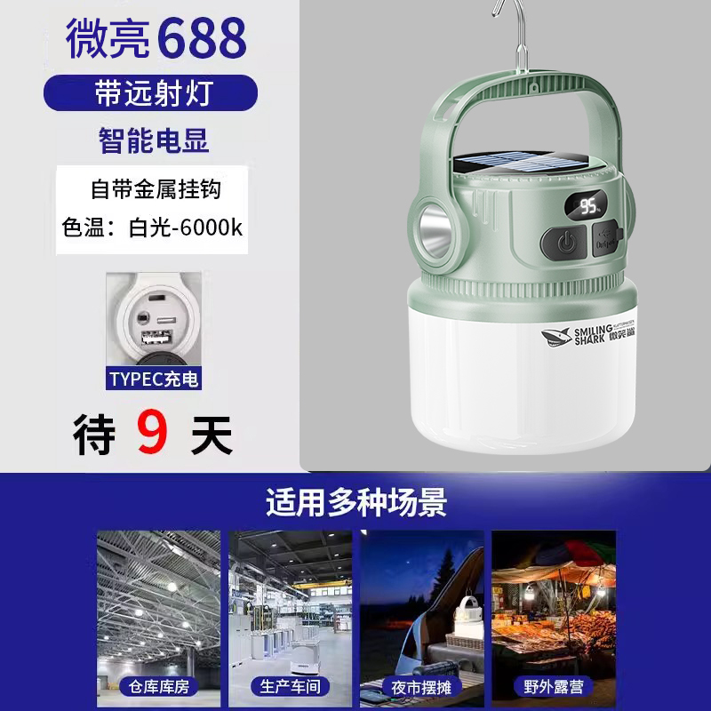 새로운 태양열 충전식 야외 캠핑 조명, 매우 긴 배터리 수명, 휴대용 스톨 야시장 교수형 조명, 모바일 조명
