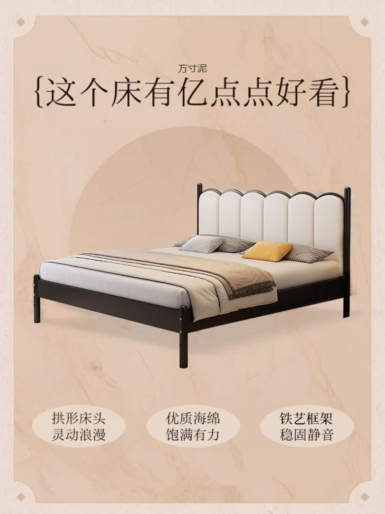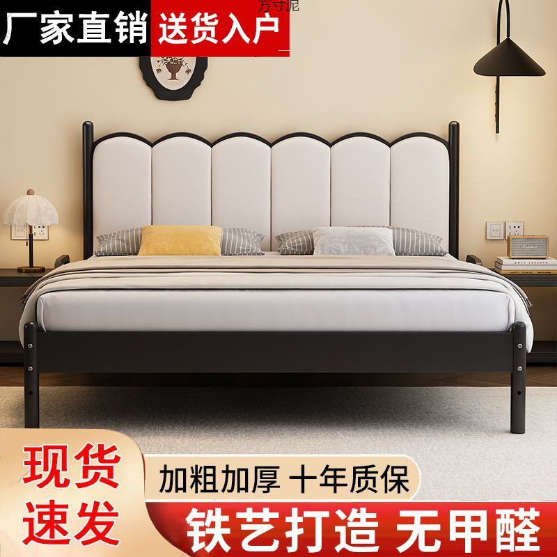 철제 침대 프렌치 크림 스타일 초박형 소프트 침대 헤드보드 모던 심플 철제 프레임 침대 더블 가정용 침대 싱글 침대 도매스토어 가기