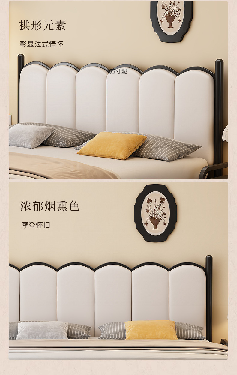 철제 침대 프렌치 크림 스타일 초박형 소프트 침대 헤드보드 모던 심플 철제 프레임 침대 더블 가정용 침대 싱글 침대 도매