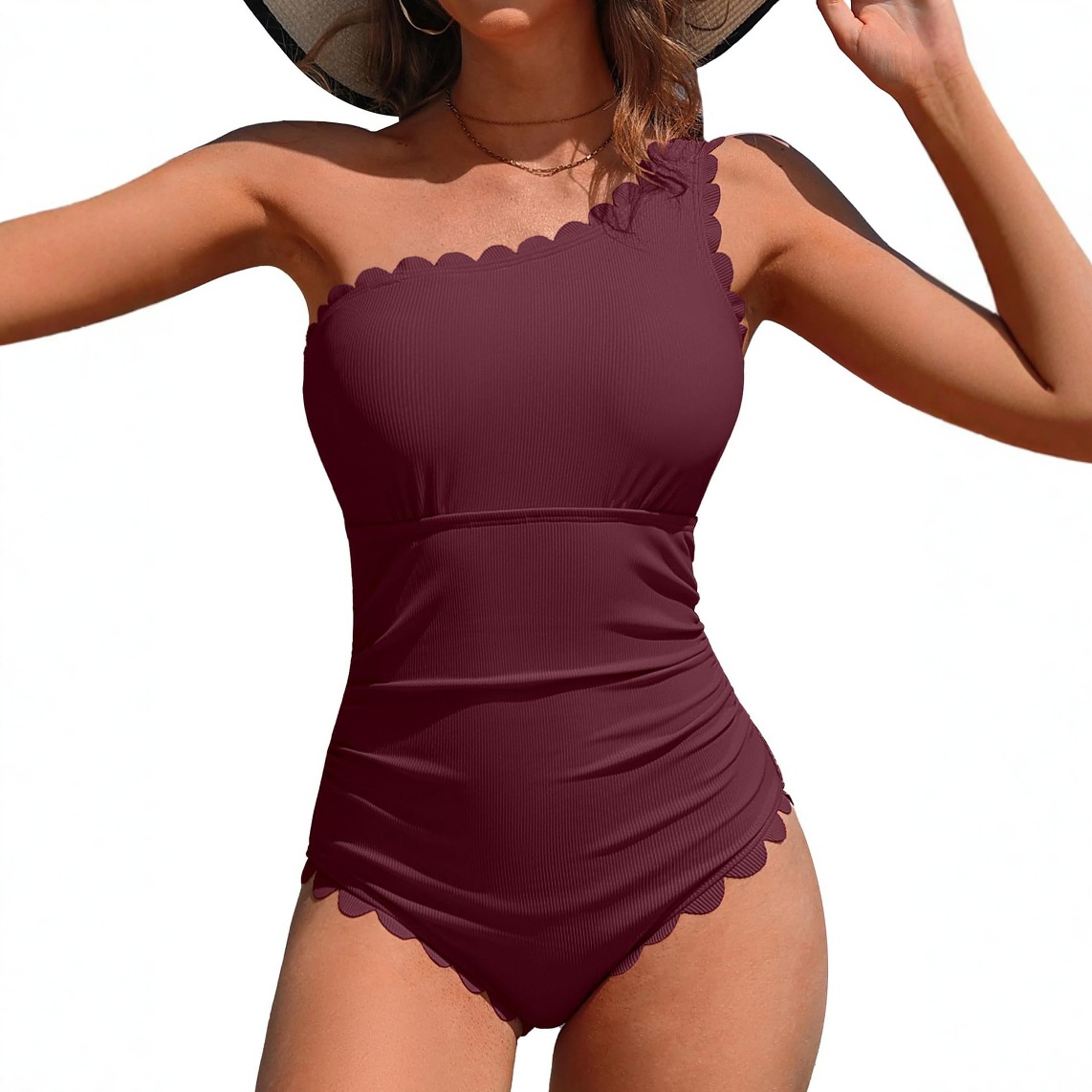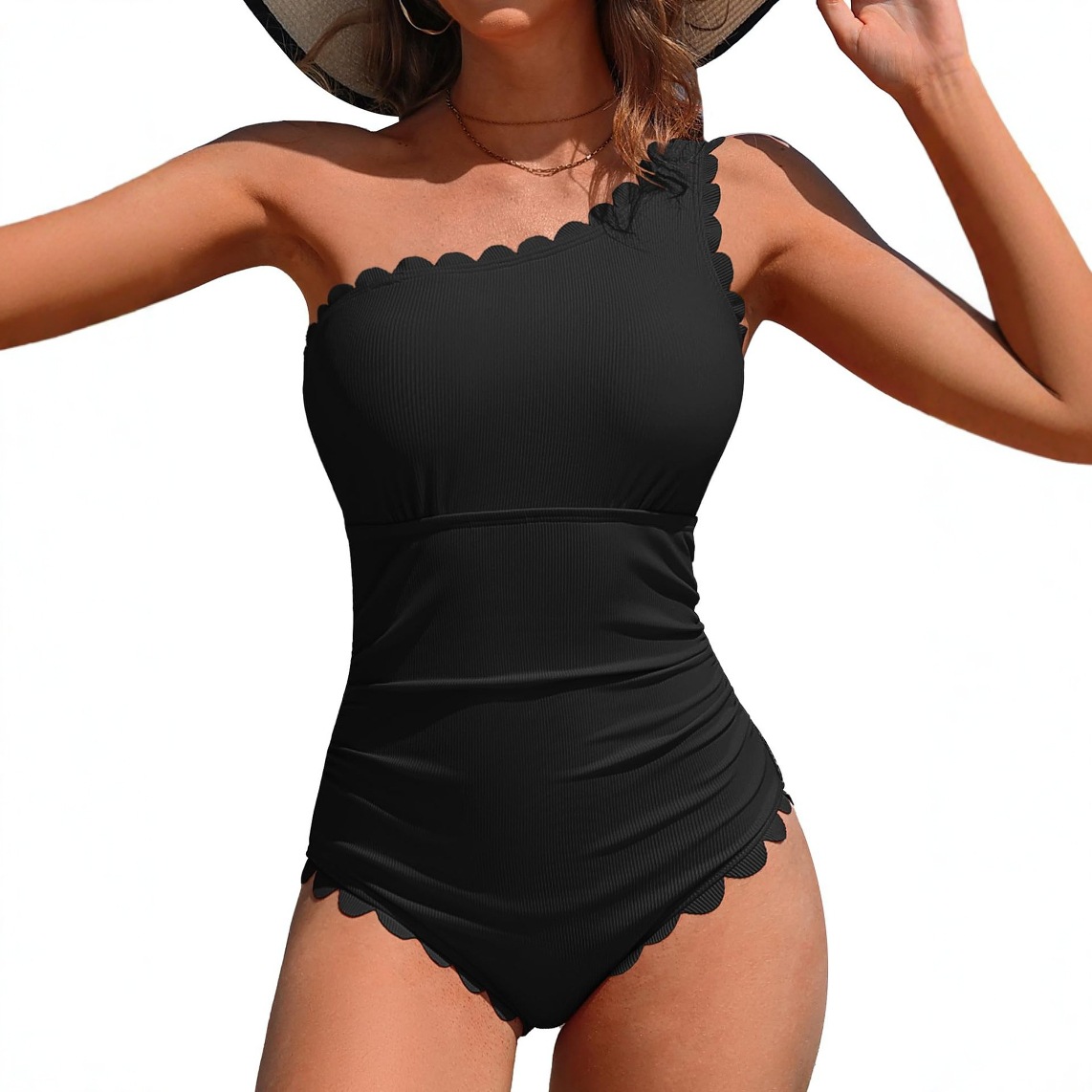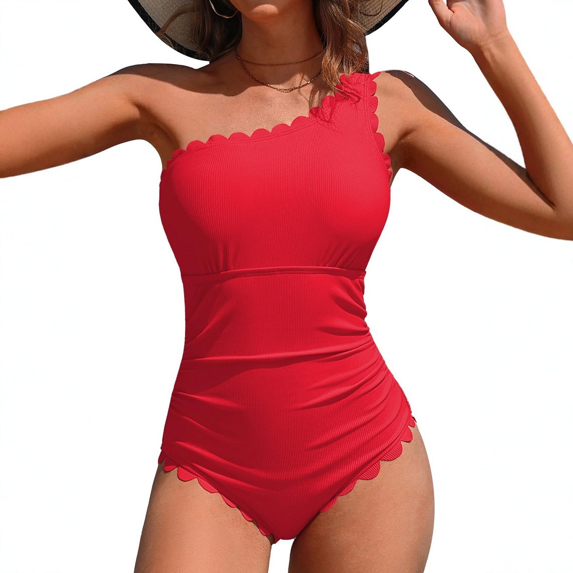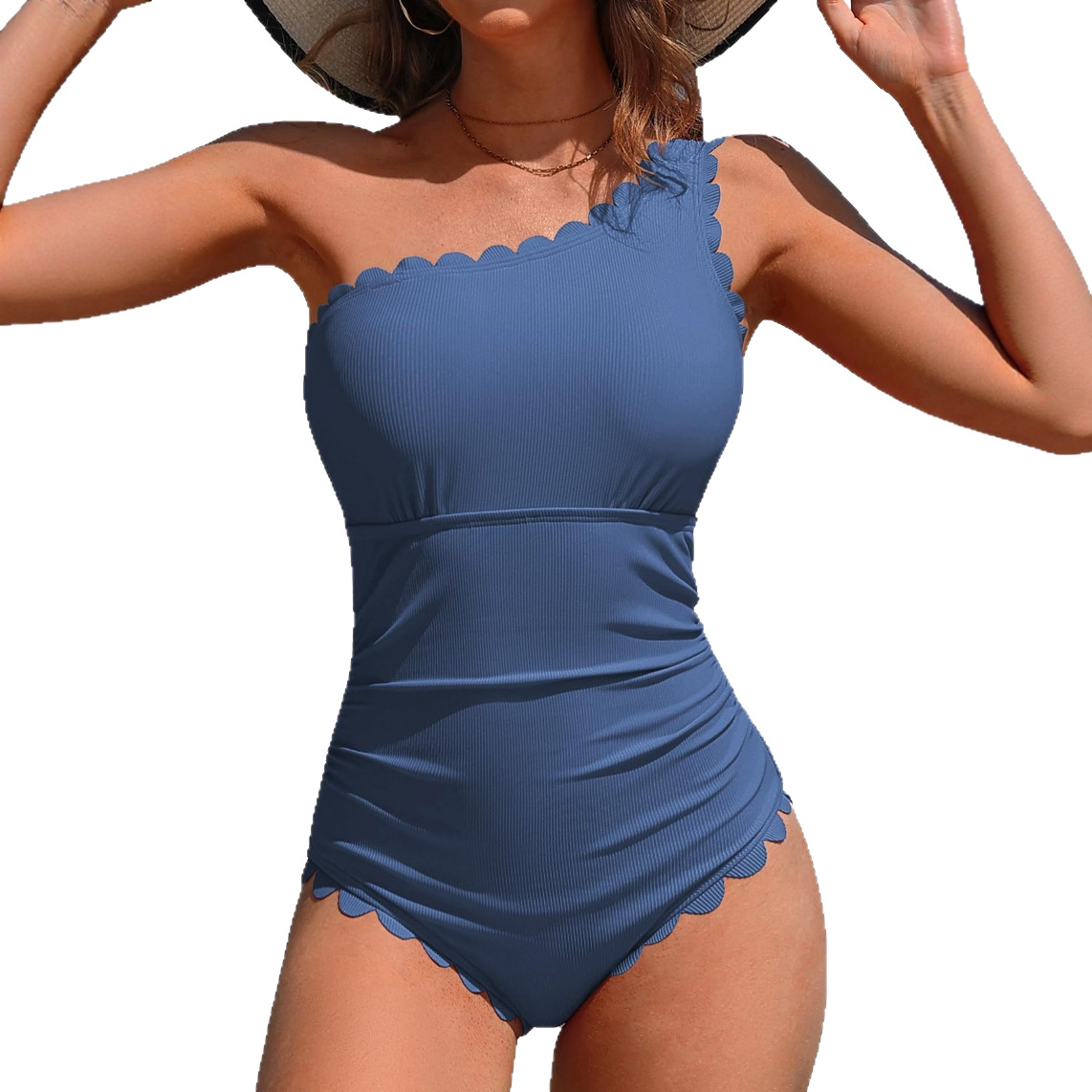 2026 유럽 및 미국 스타일 단색 원숄더 크로스백 수영복 여성 섹시 스플릿 비키니 원피스형