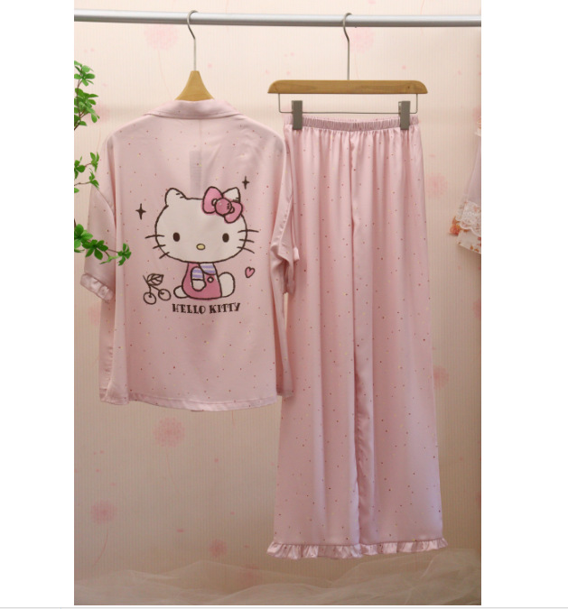 Nutshell 같은 스타일 잠옷 키티 얼음과 눈 실크 잠옷 여성 2025 새로운 가을 긴팔 바지 홈웨어 세트
