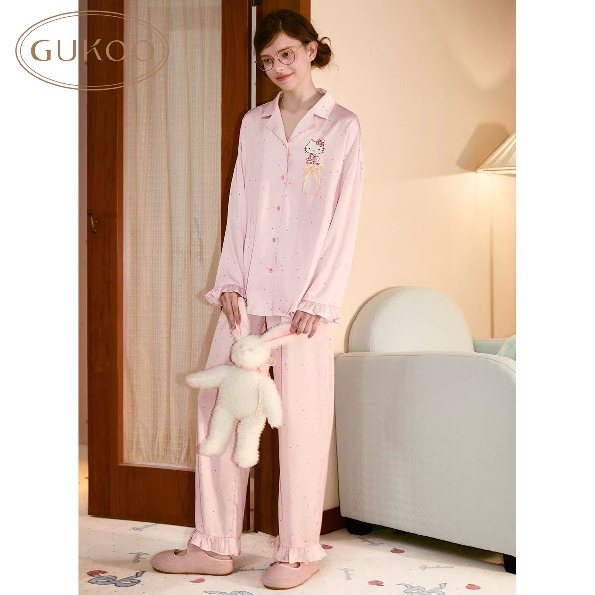 Nutshell 같은 스타일 잠옷 키티 얼음과 눈 실크 잠옷 여성 2025 새로운 가을 긴팔 바지 홈웨어 세트스토어 가기