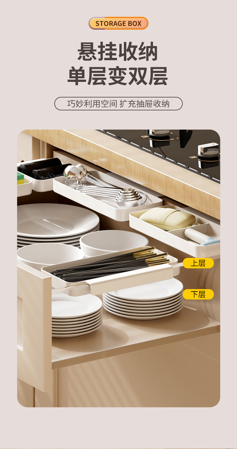 • 商品名称:橱柜书桌抽屉内挂式分类小物件收纳盒 大号双分格