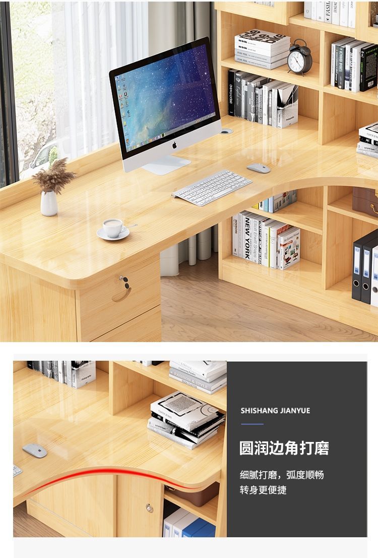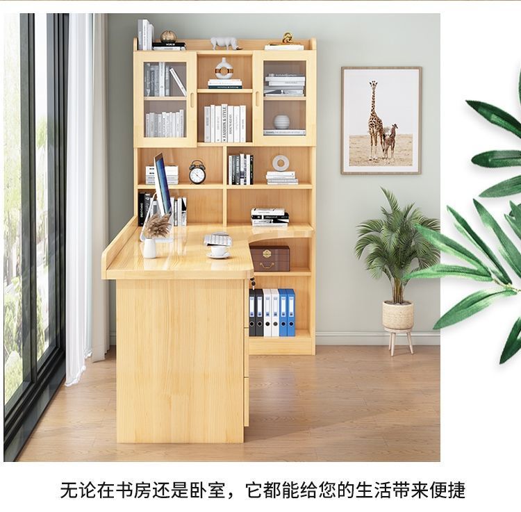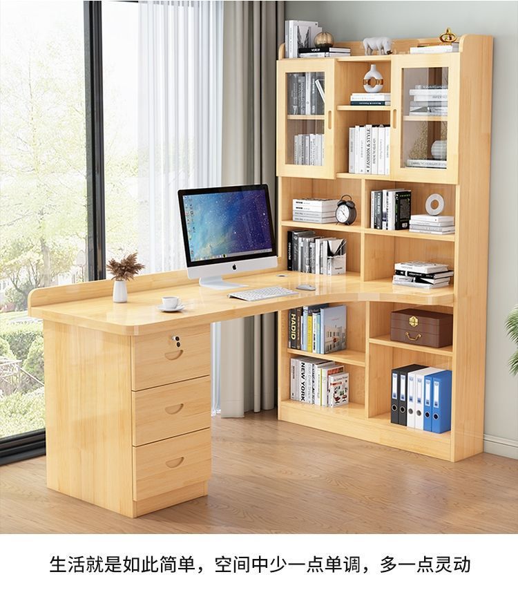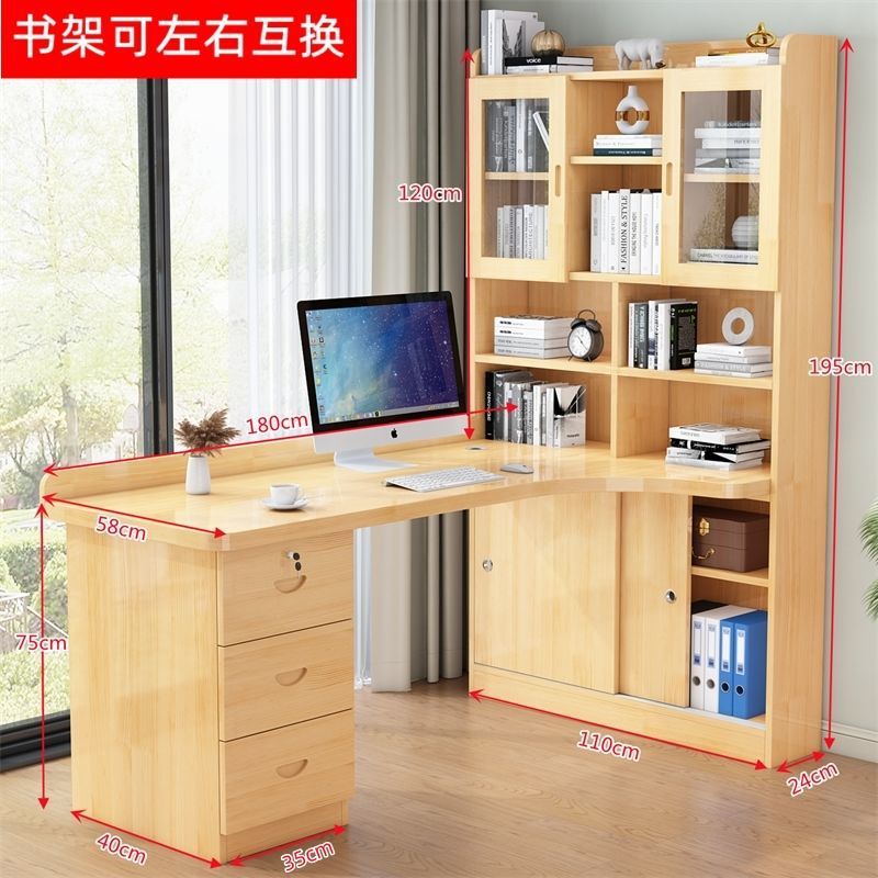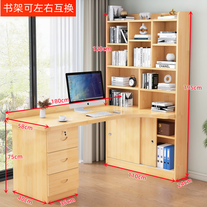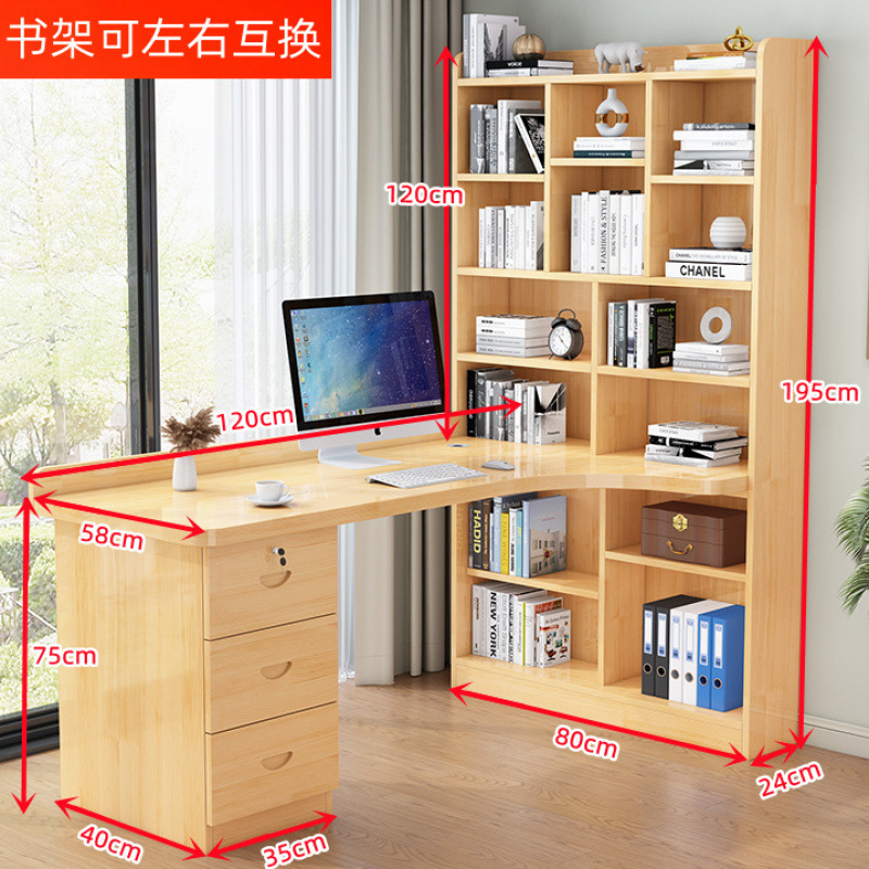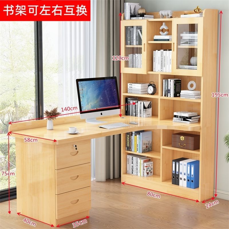 침실 어린이 학습 책상 간단한 데스크탑 사무실 컴퓨터 책상 단단한 나무 코너 책상 책장 통합 조합스토어 가기
