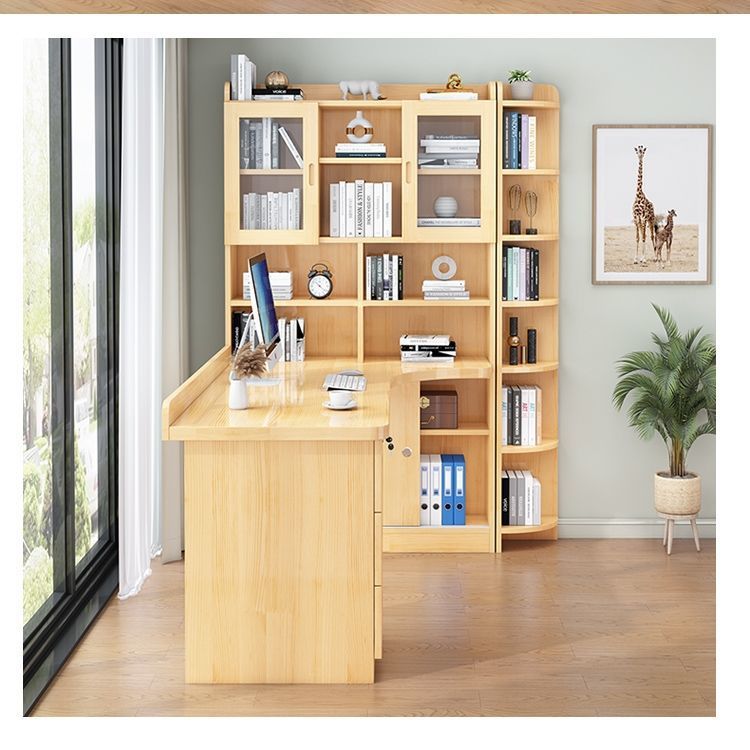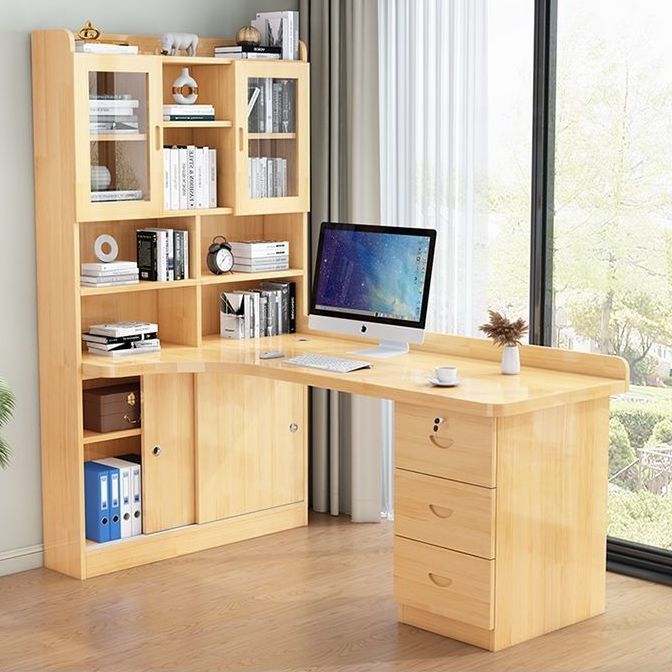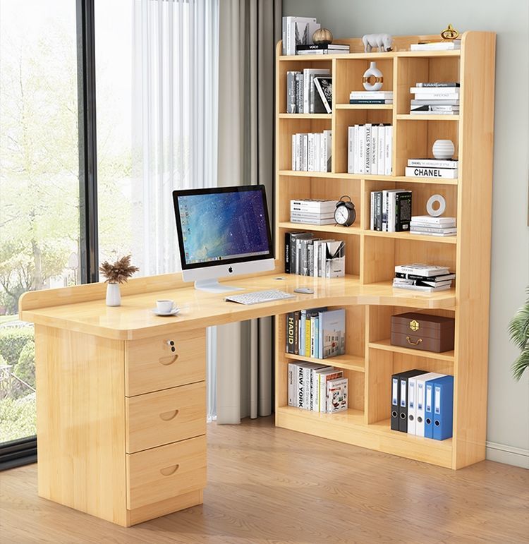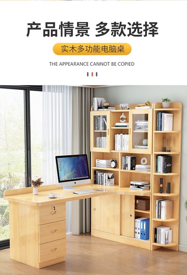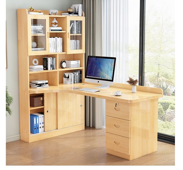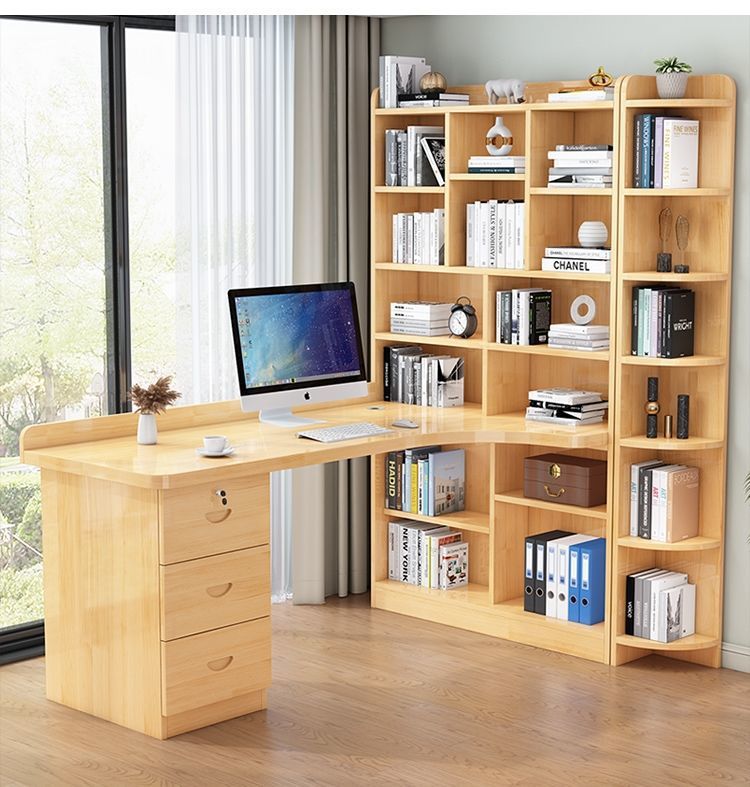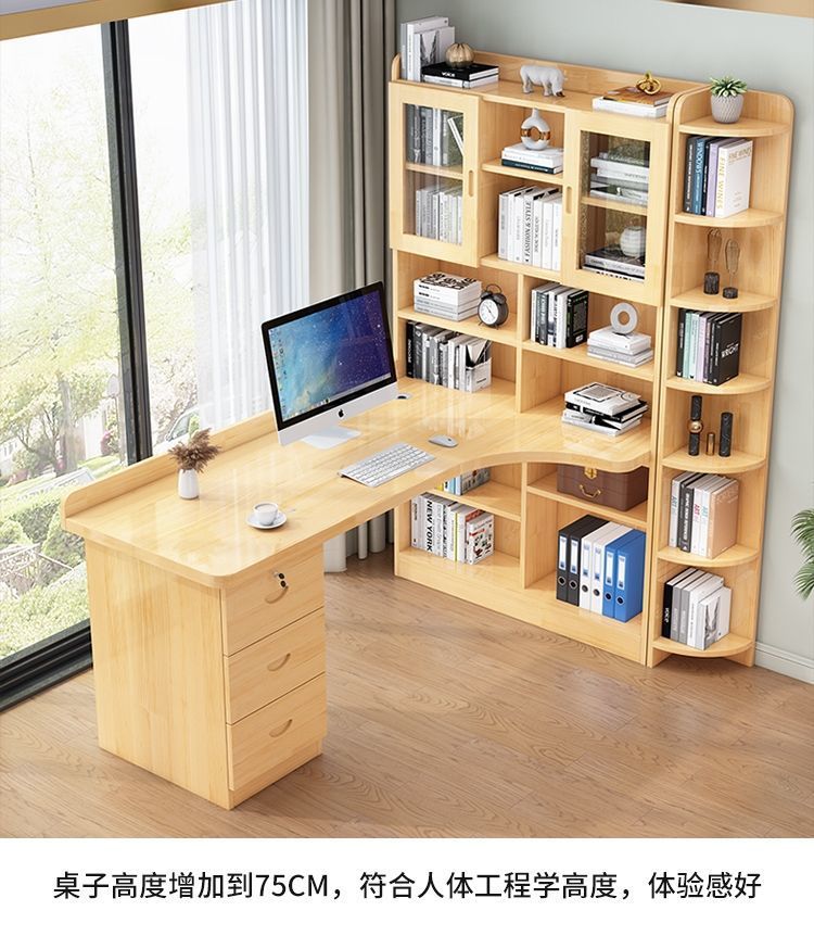 침실 어린이 학습 책상 간단한 데스크탑 사무실 컴퓨터 책상 단단한 나무 코너 책상 책장 통합 조합스토어 가기