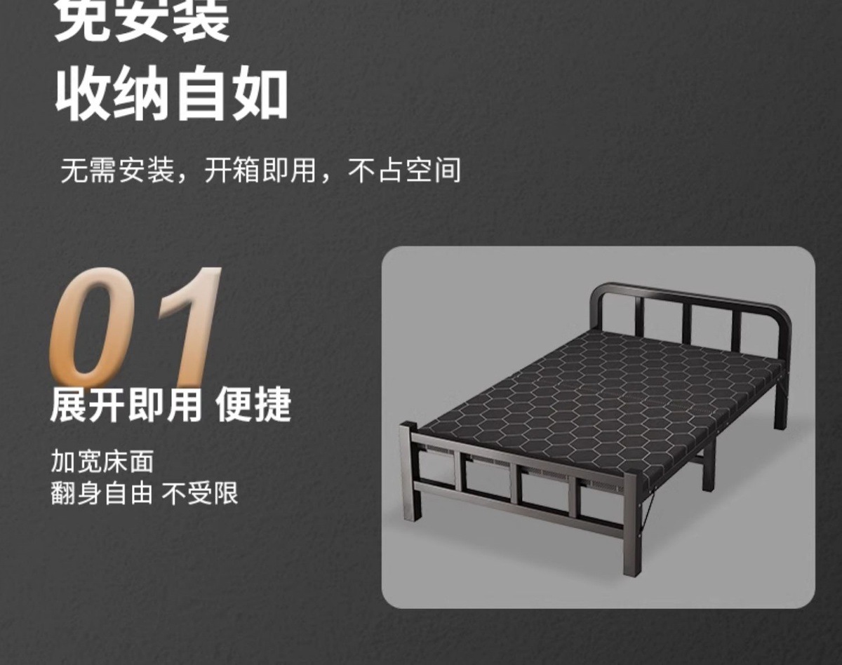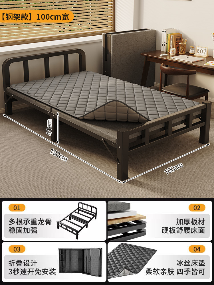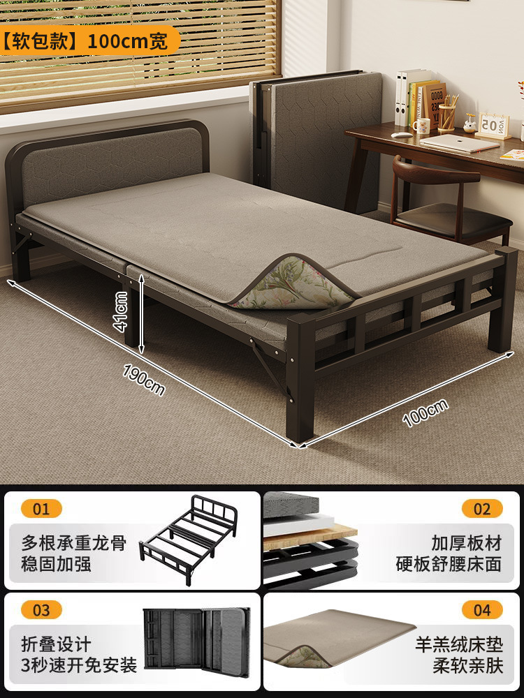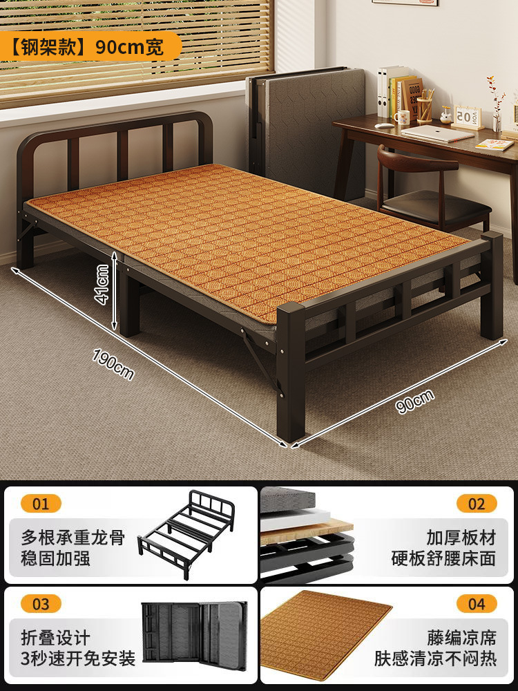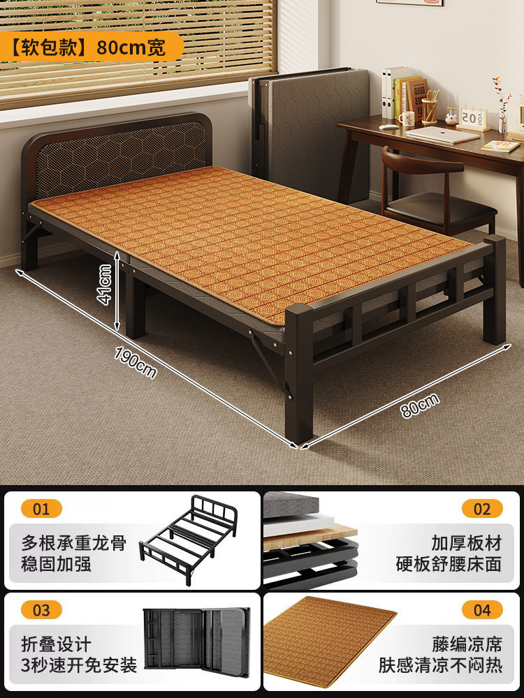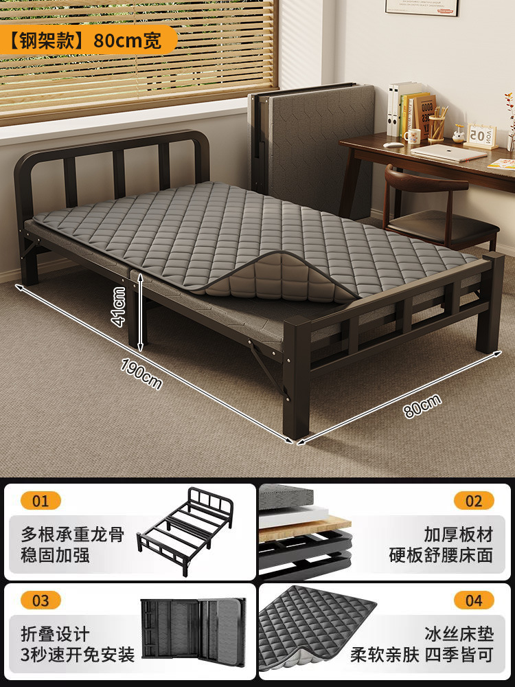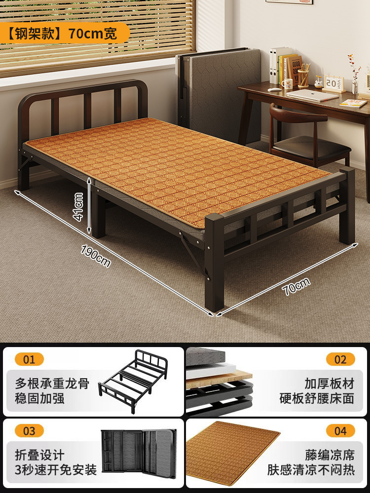 1인용 접이식 침대 시트, 간이침대, 사무실 낮잠용품, 기숙사 낮잠용 소형 침대, 임대주택, 성인용 철제 침대
