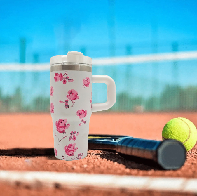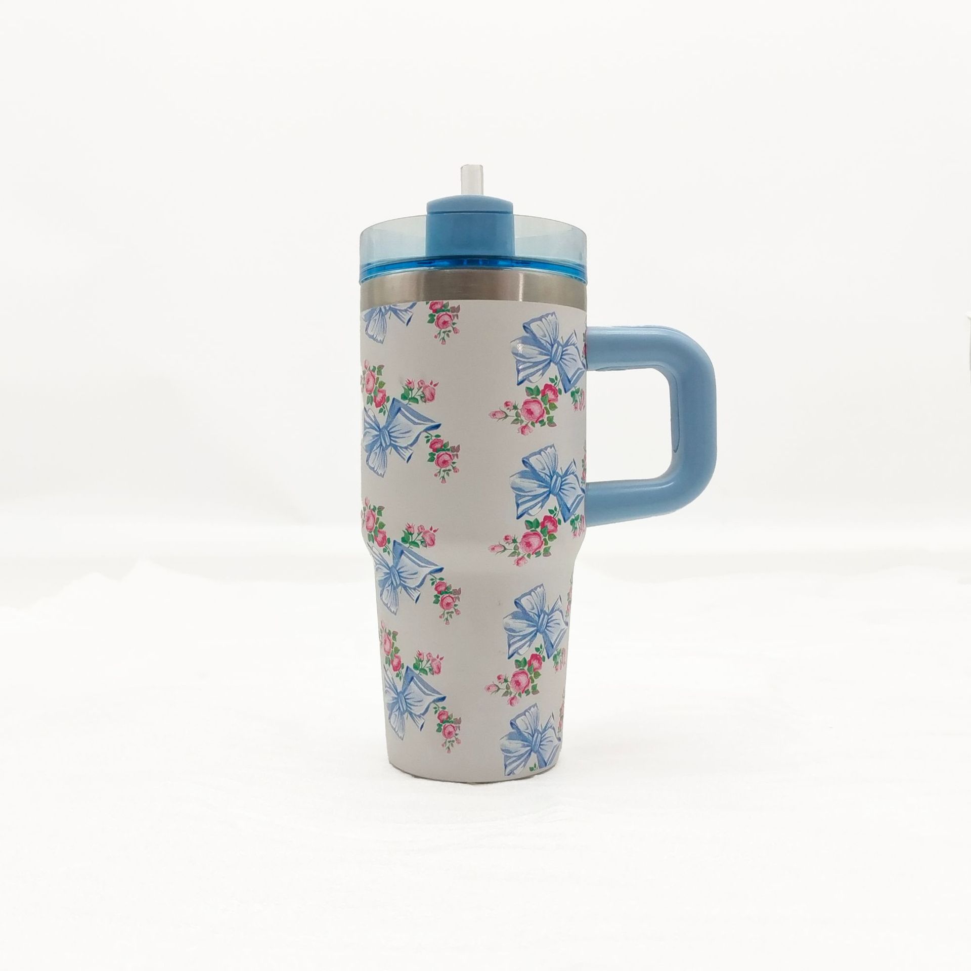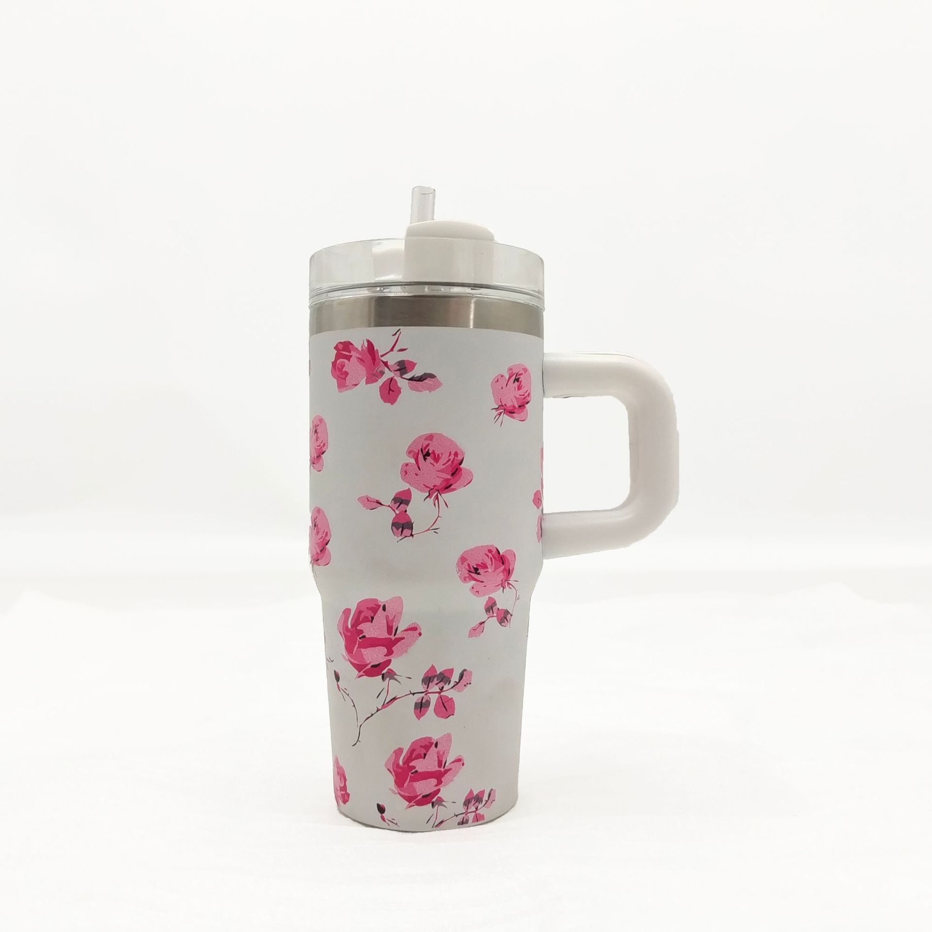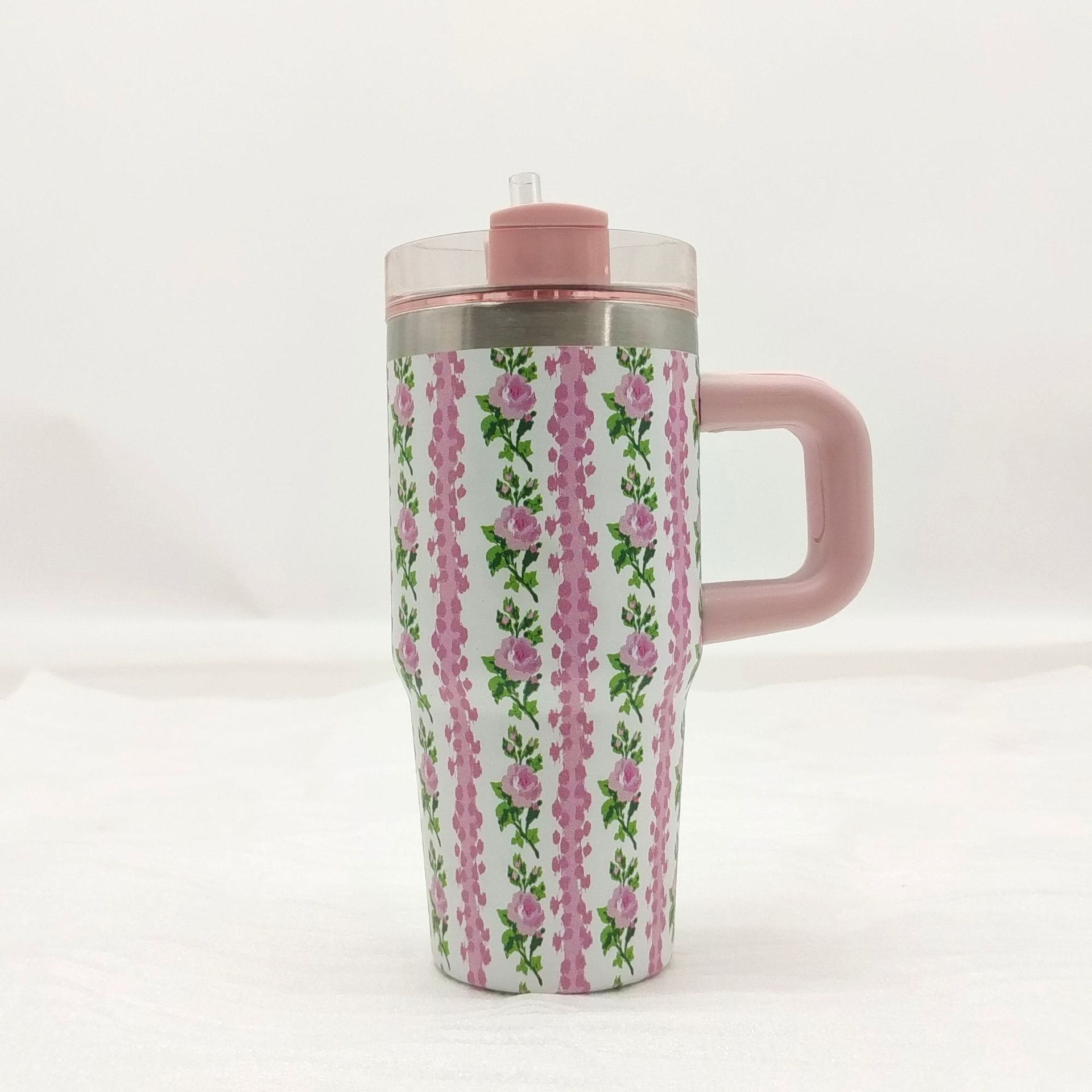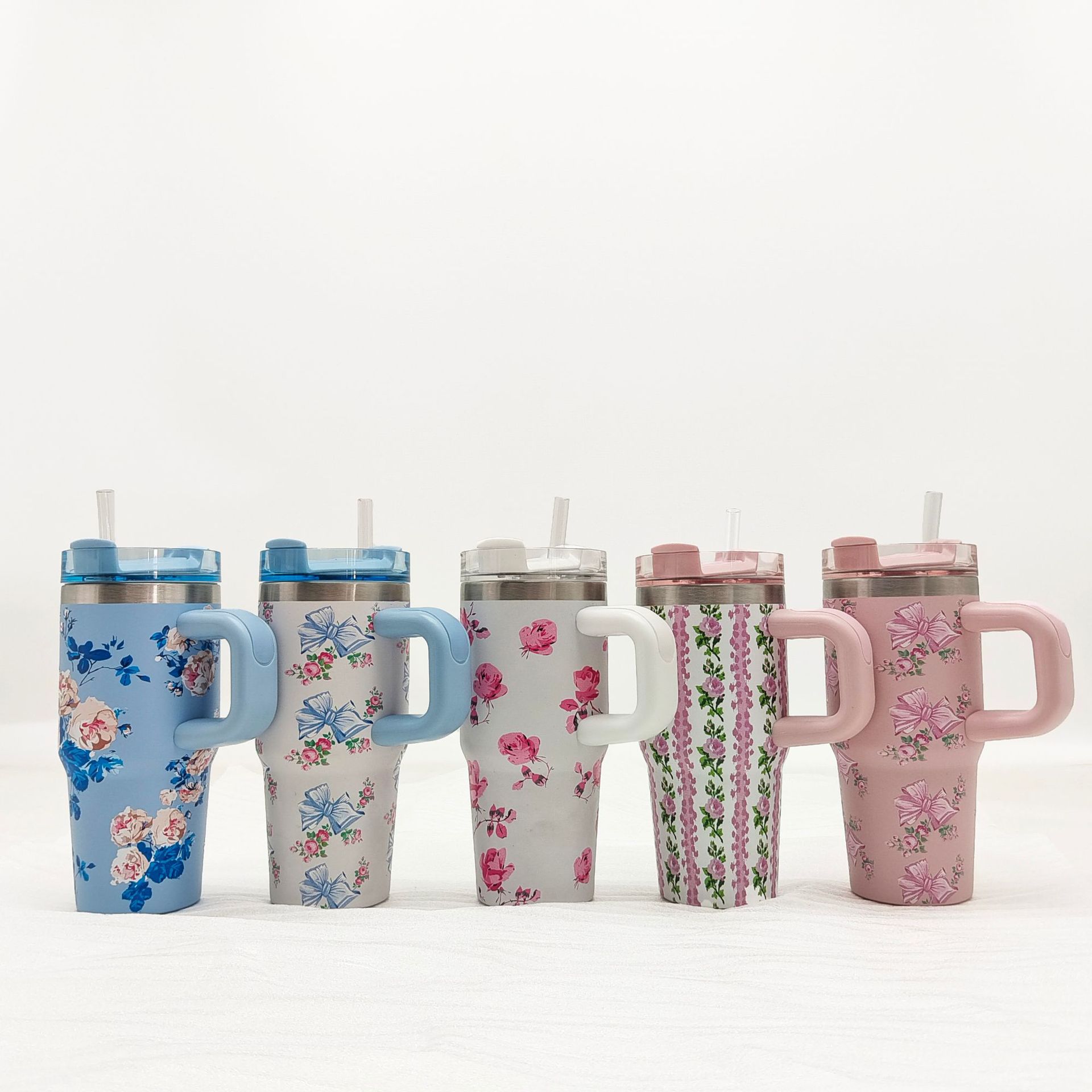 손잡이와 빨대가 있는 국경 간 14OZ 자동차 컵 빨대가 있는 이중층 스테인레스 스틸 절연 컵 제조 업체 도매