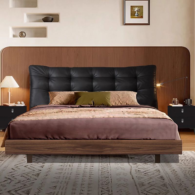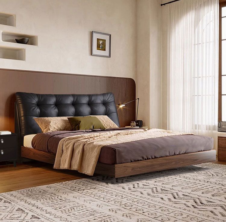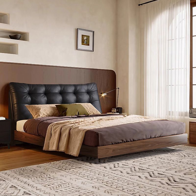 중세 스타일 가죽 침대, 호두나무 원목 침대, 이탈리안 라이트 럭셔리 서스펜션 침대, 마스터 침실, 고급스럽고 우아한 퀸 사이즈 침대
