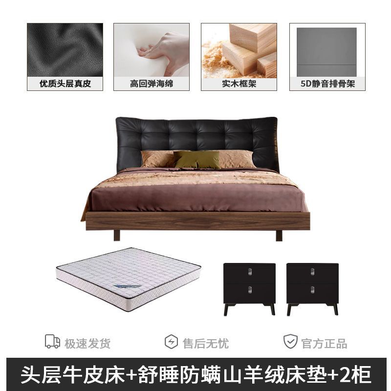 • 조용한 침대 보드 + 천연 가죽의 첫 번째 레이어 + 9D 완전 분리형 독립 백 매트리스 + 캐비닛 2개