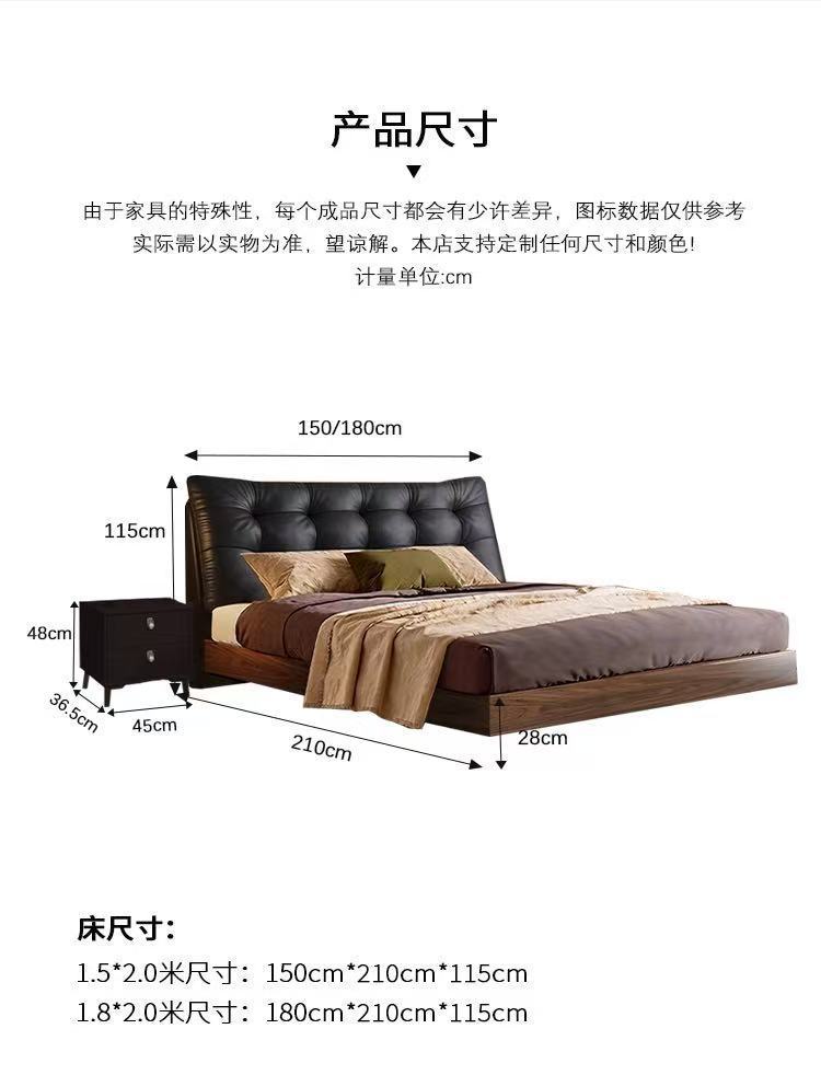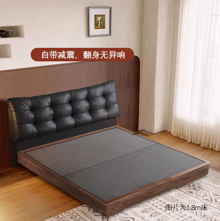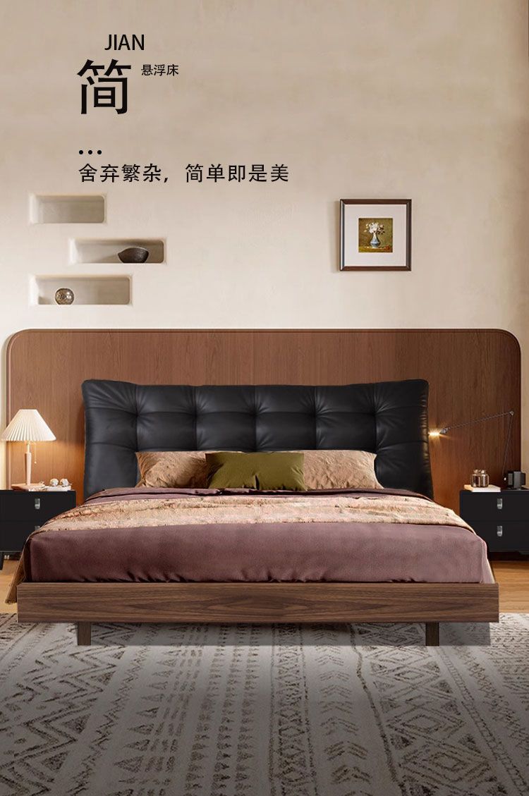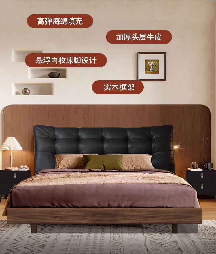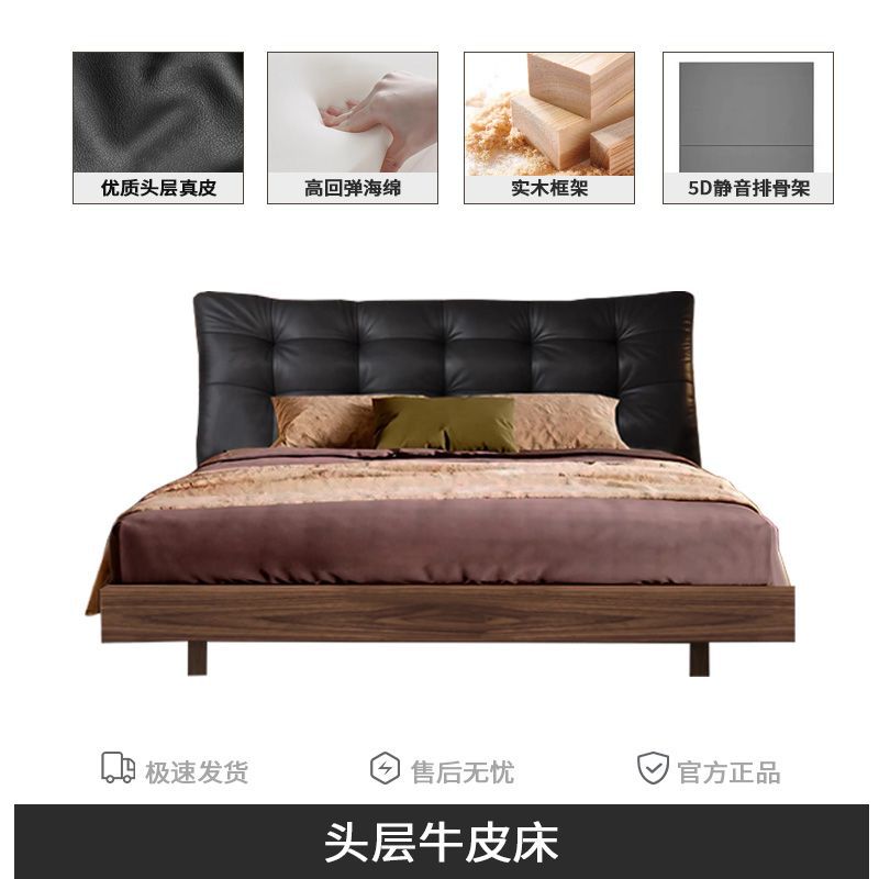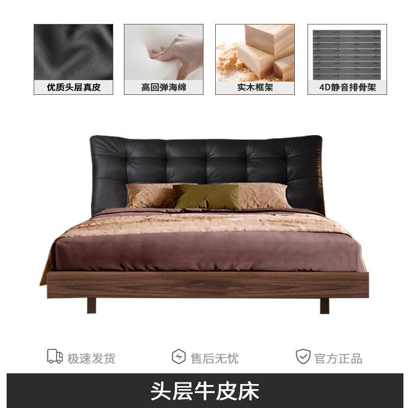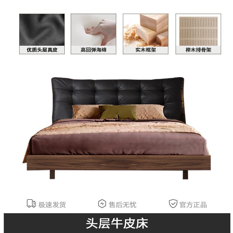 중세 스타일 가죽 침대, 호두나무 원목 침대, 이탈리안 라이트 럭셔리 서스펜션 침대, 마스터 침실, 고급스럽고 우아한 퀸 사이즈 침대스토어 가기