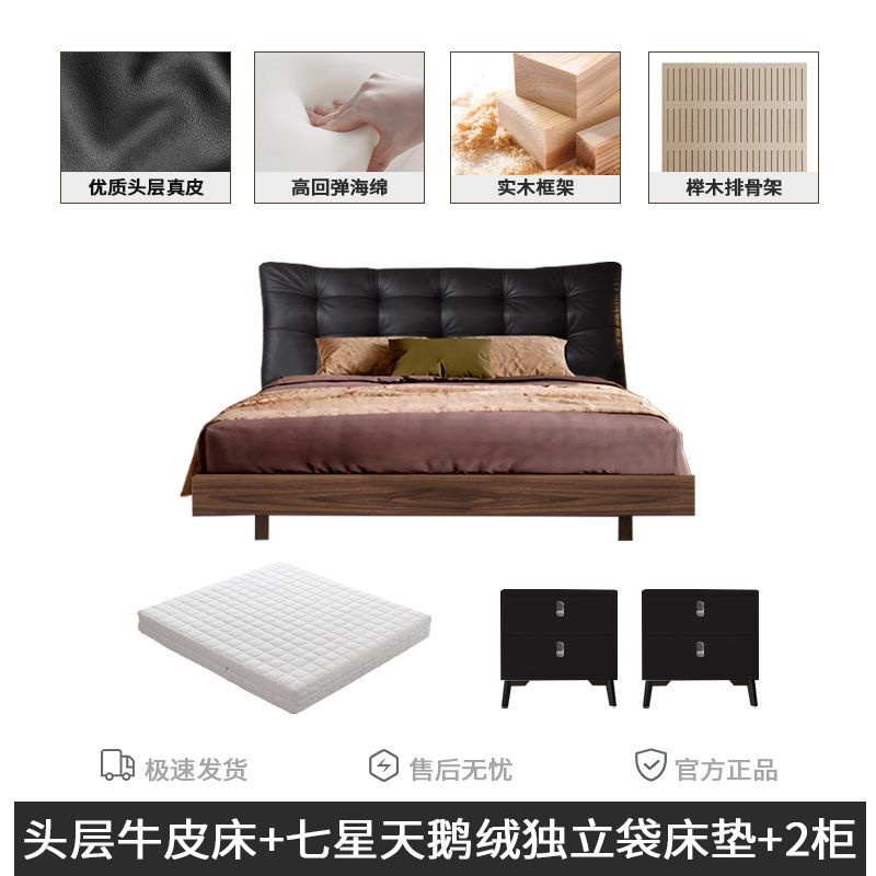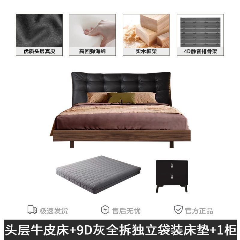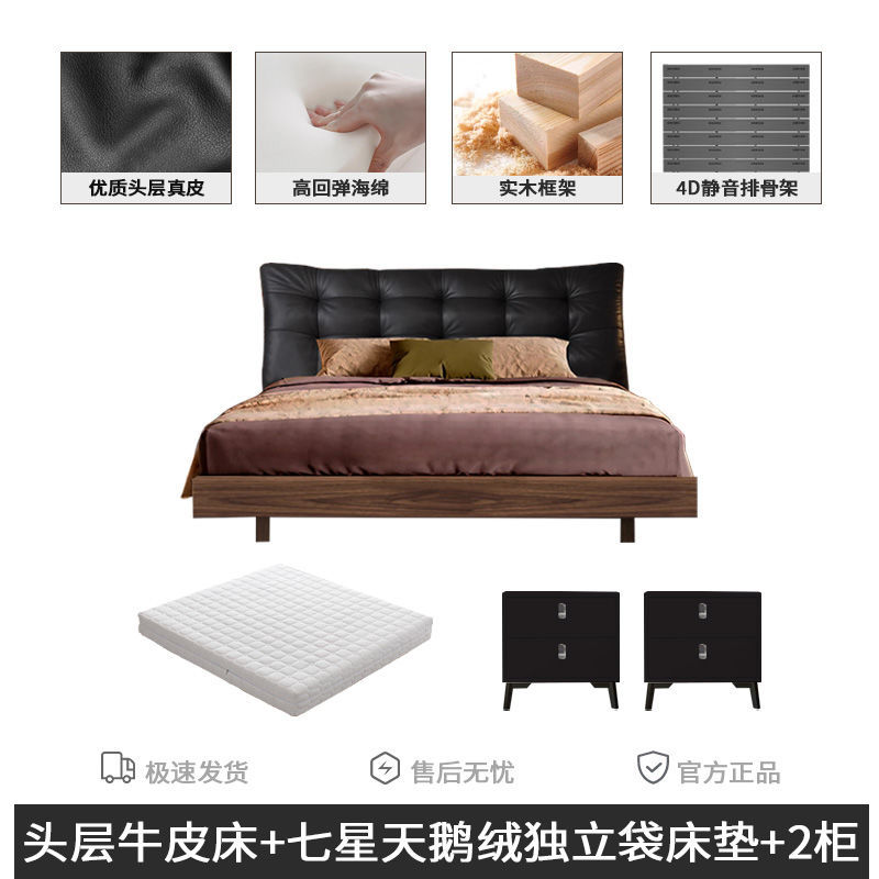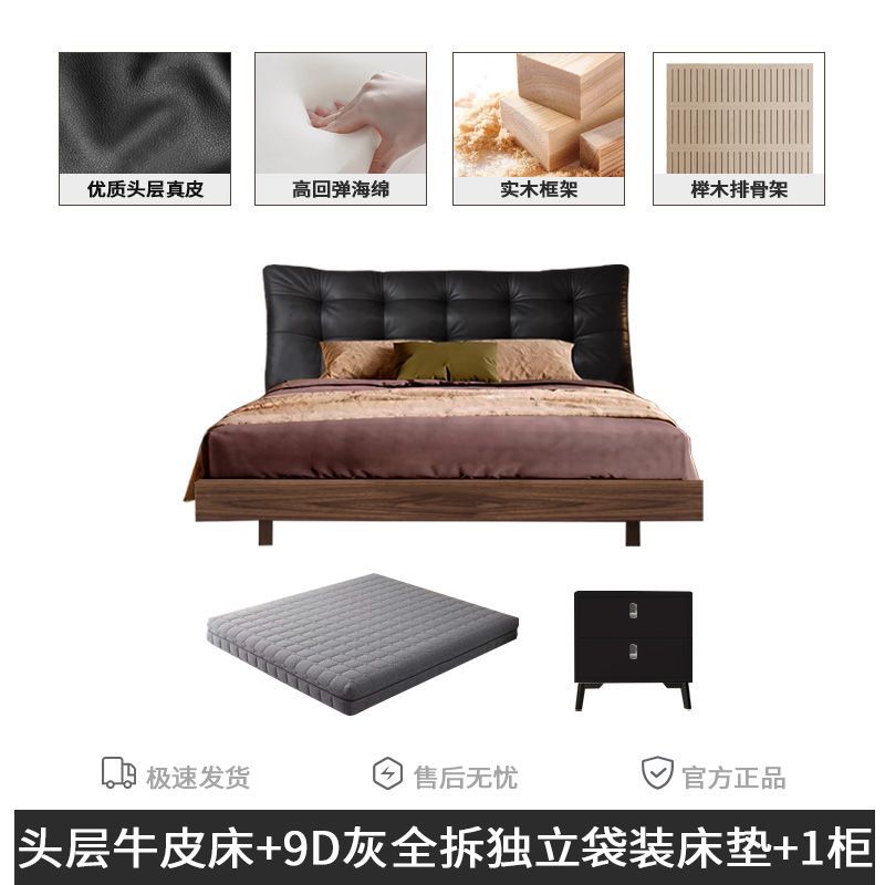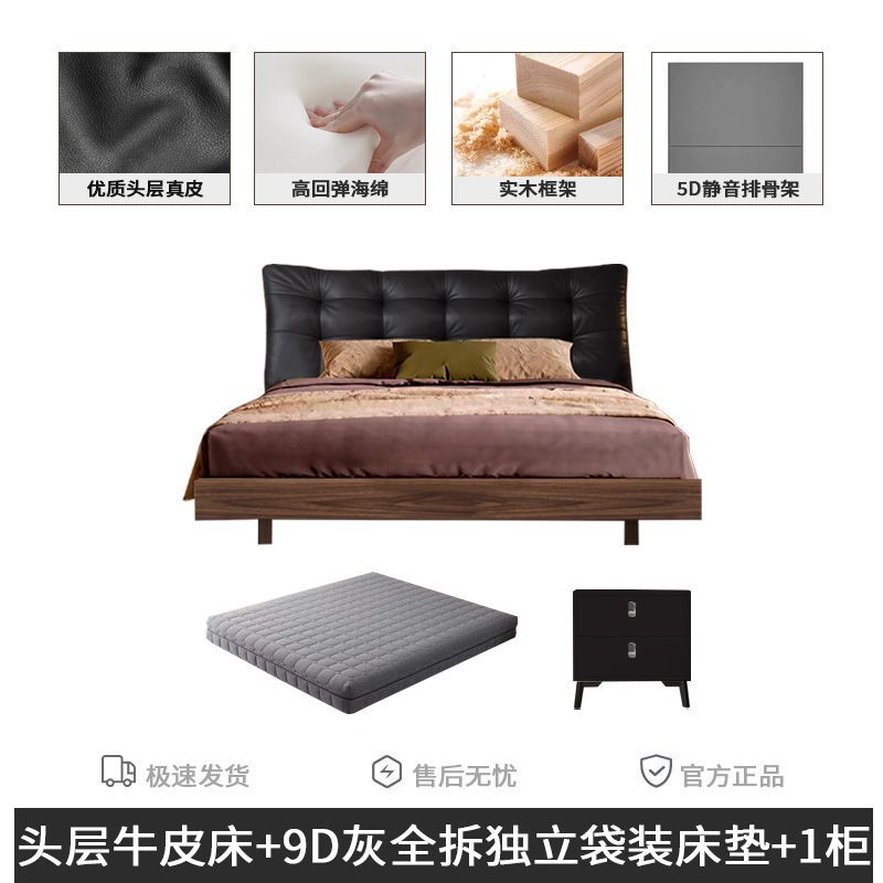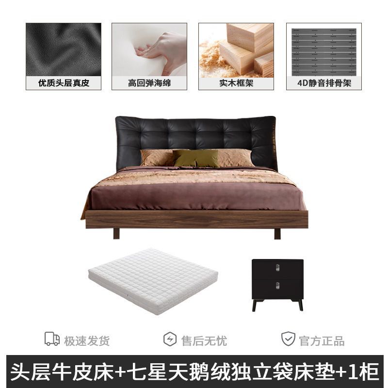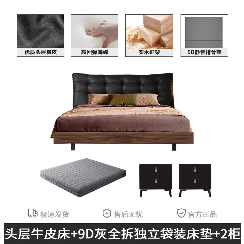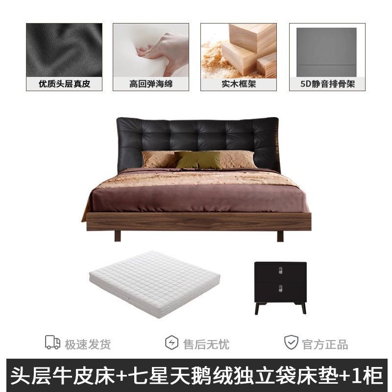 • 풀 침대 보드 + 천연 가죽 + 9D 완전 분리형 독립 백 매트리스 + 캐비닛 1개