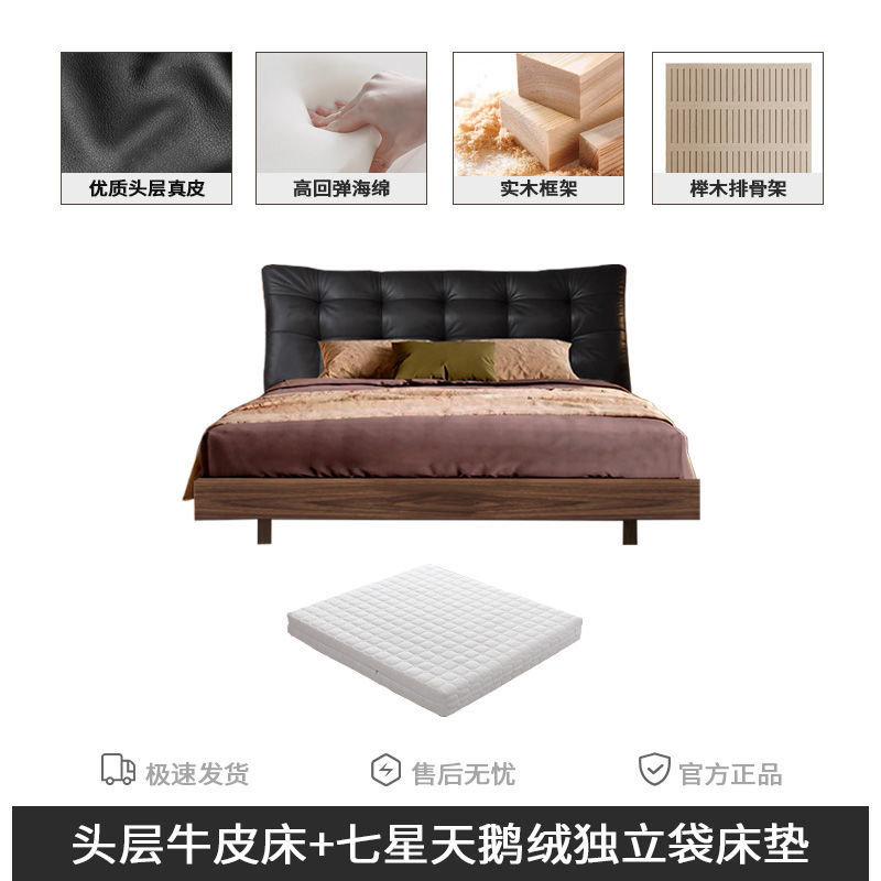 • 풀 침대 보드 + 천연 가죽 + 7성 벨벳 독립 백 매트리스
