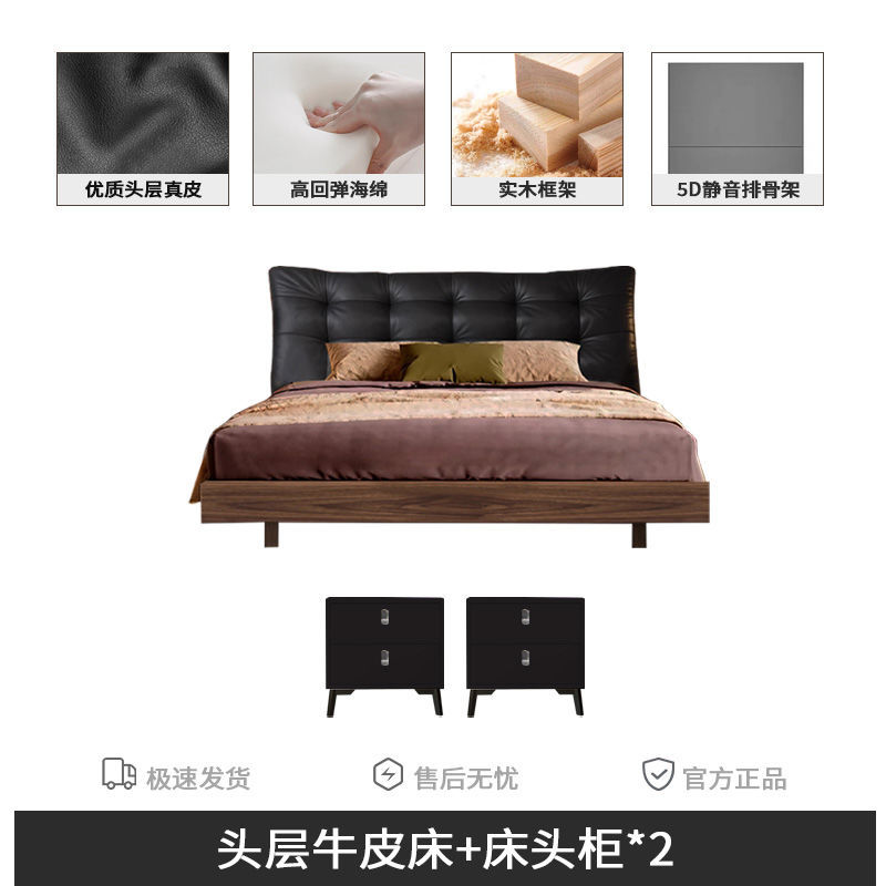 • 조용한 침대 보드 + 천연 가죽의 첫 번째 레이어 + 침대 옆 테이블*2