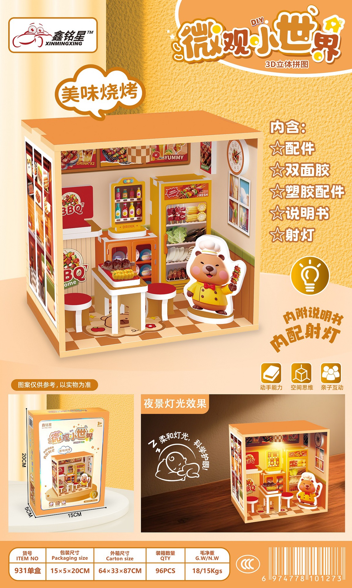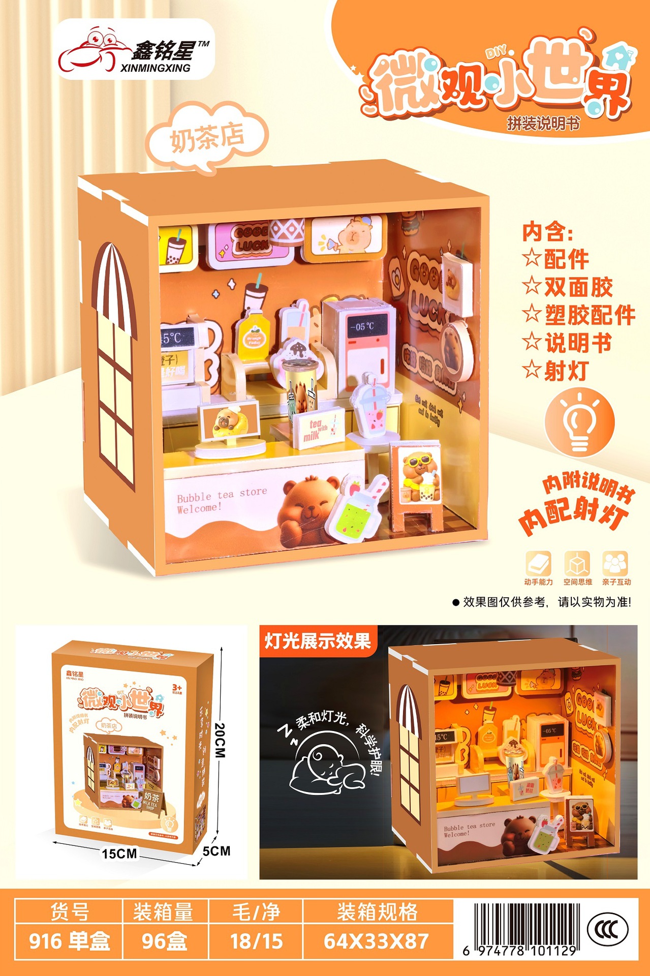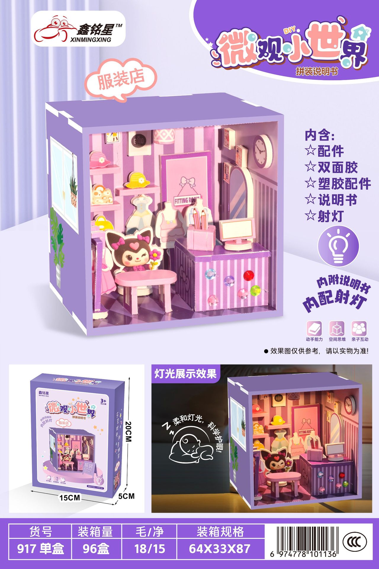 어린이 미시 작은 세계 절묘한 오두막 시리즈 DIY 라이트 하우스 모델 빌딩 블록 입체 장식품 선물 장난감스토어 가기