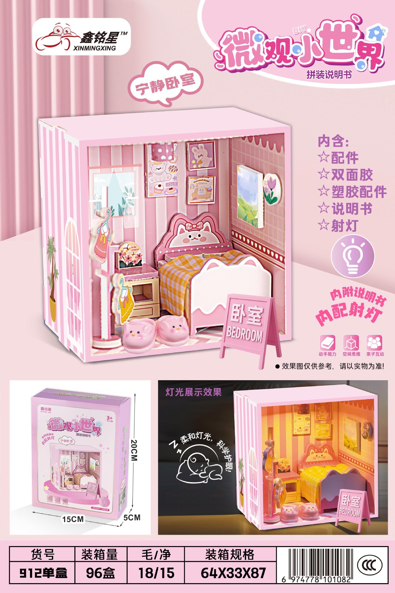 어린이 미시 작은 세계 절묘한 오두막 시리즈 DIY 라이트 하우스 모델 빌딩 블록 입체 장식품 선물 장난감