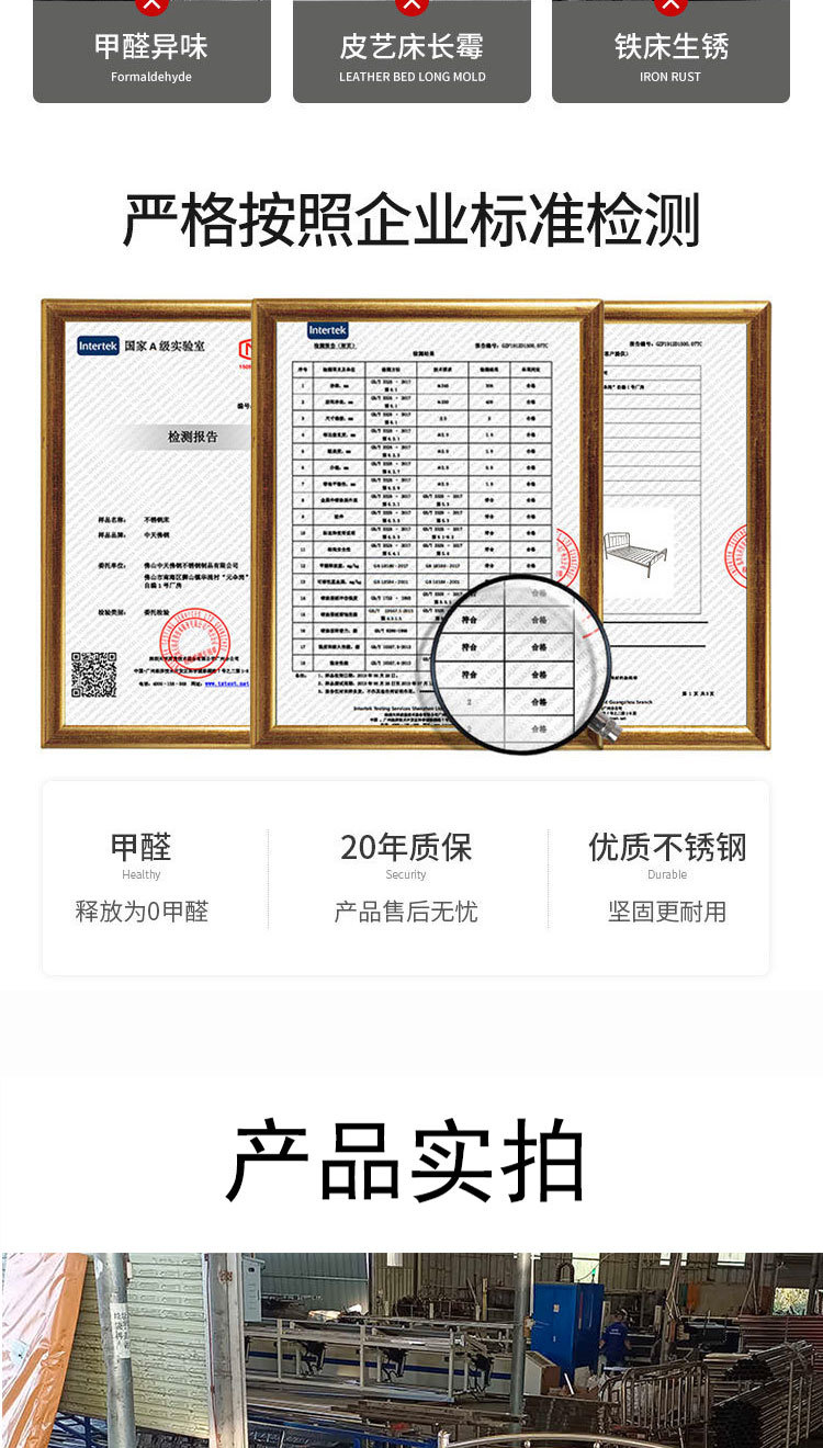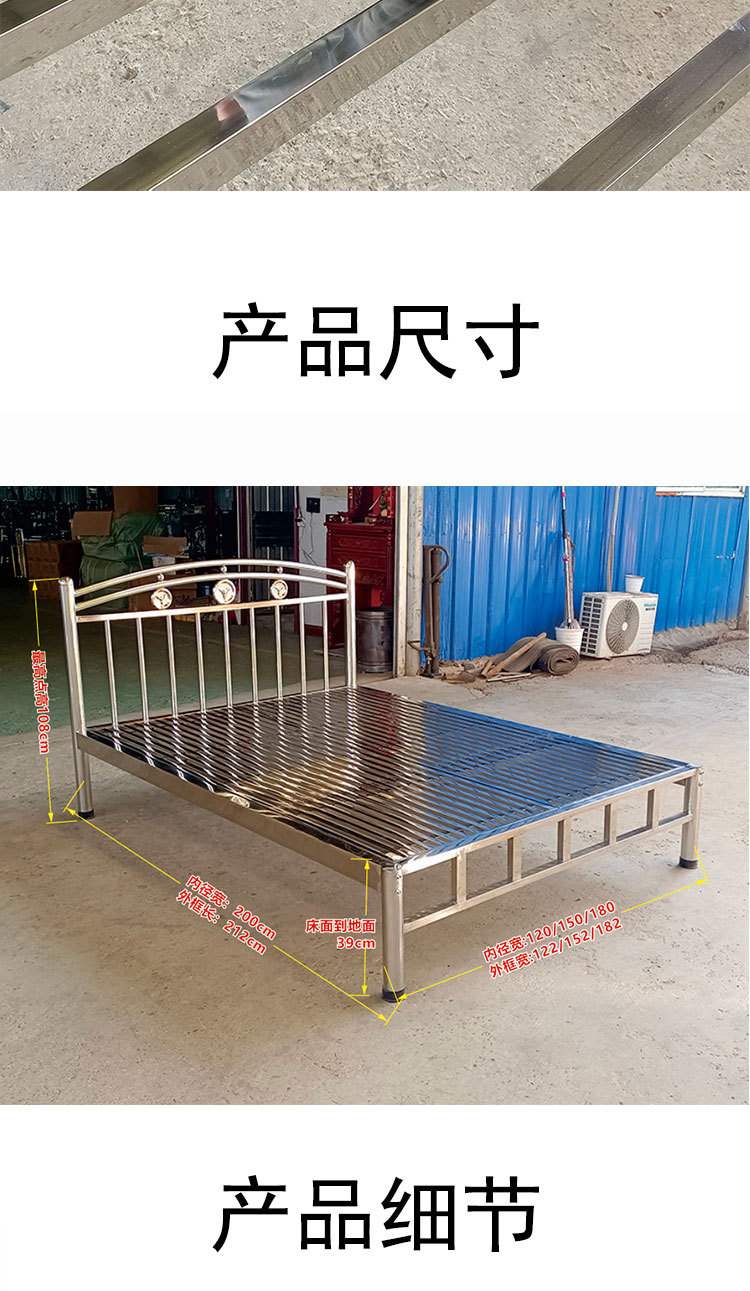 스테인레스 스틸 침대 304 스테인레스 스틸 더블 침대 임대실 1.2m 싱글 철제 침대 프레임 기숙사 침대 두꺼운스토어 가기