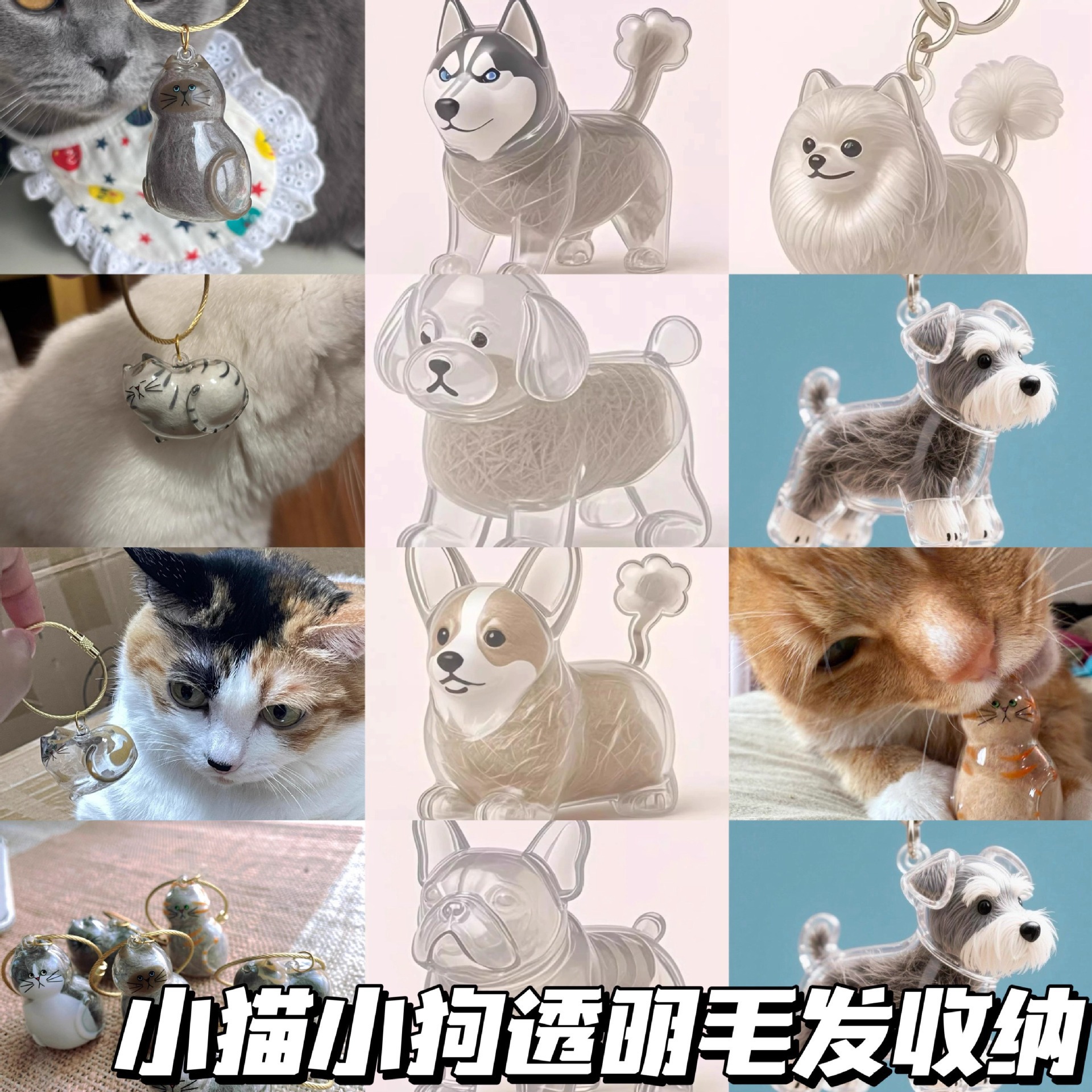 헤어 보관 상자 귀여운 강아지 투명 동물 헤어 볼 캡슐 펜던트 장식 기념품 방진 상자 수집 장난감스토어 가기