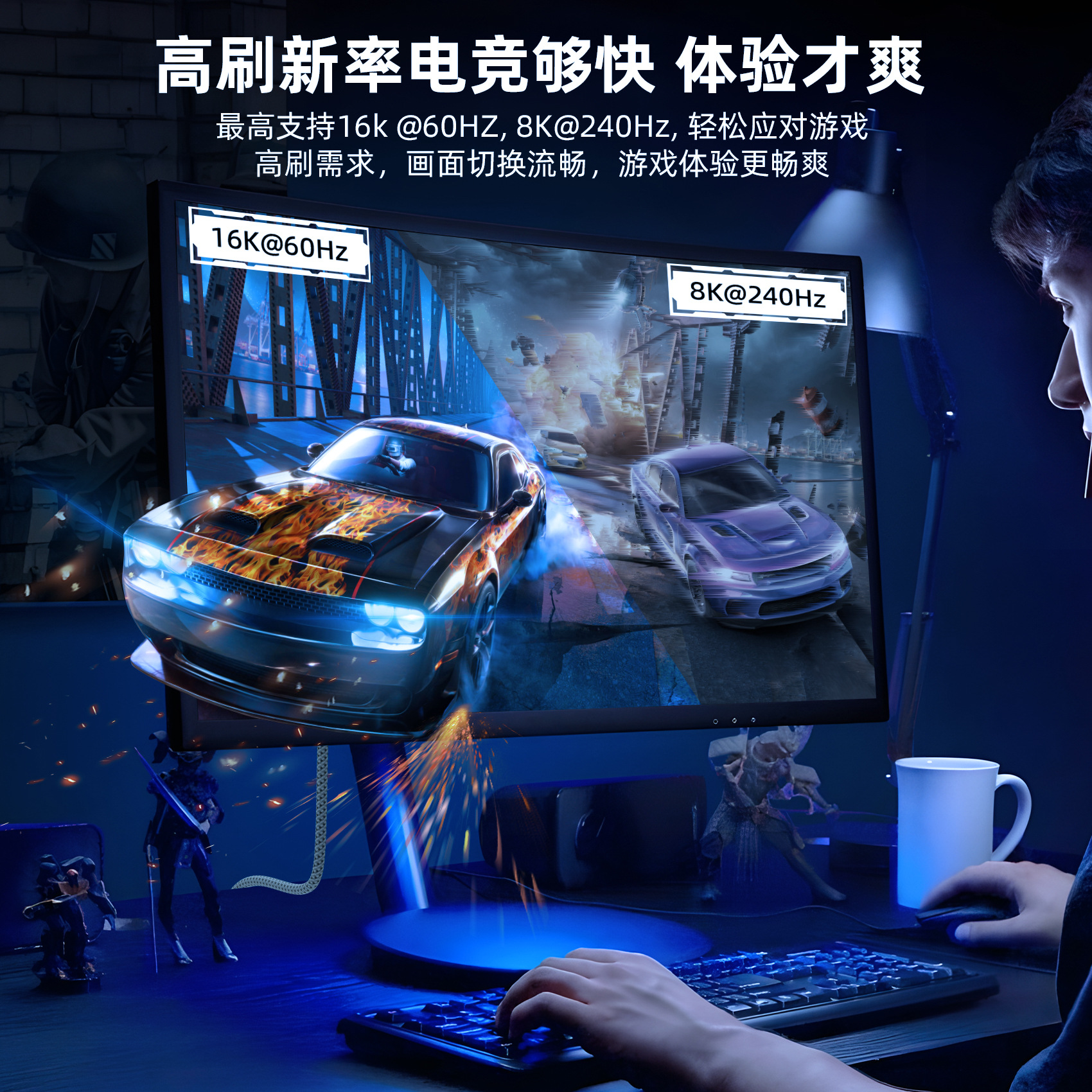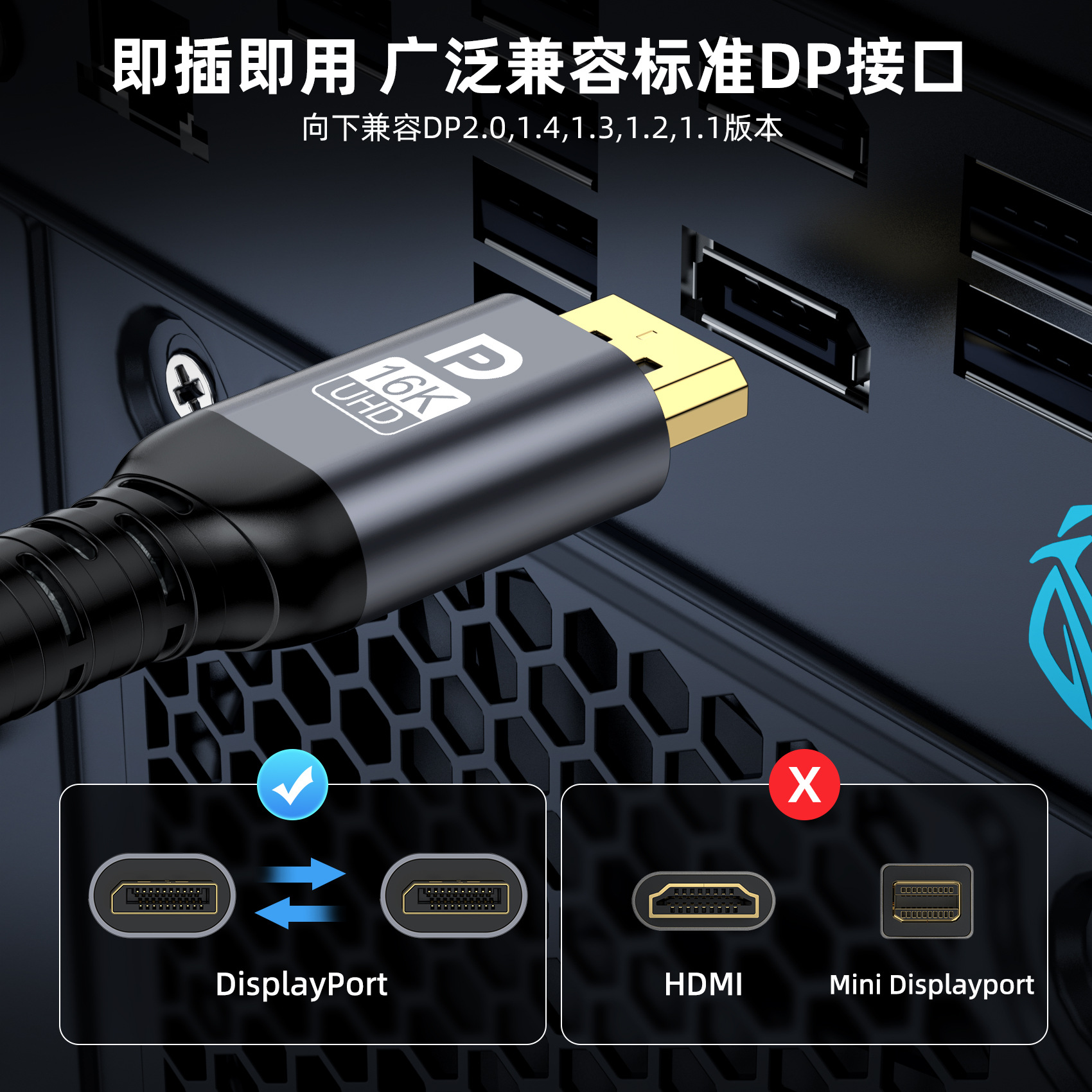 DP 2.1 HD 케이블 16K60HZ 8K240HZ 컴퓨터 그래픽 카드를 모니터 e-스포츠 게임 비디오에 연결