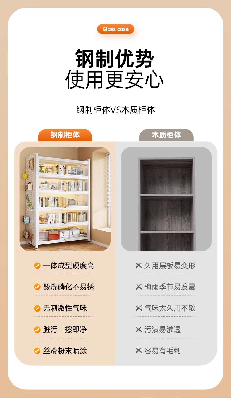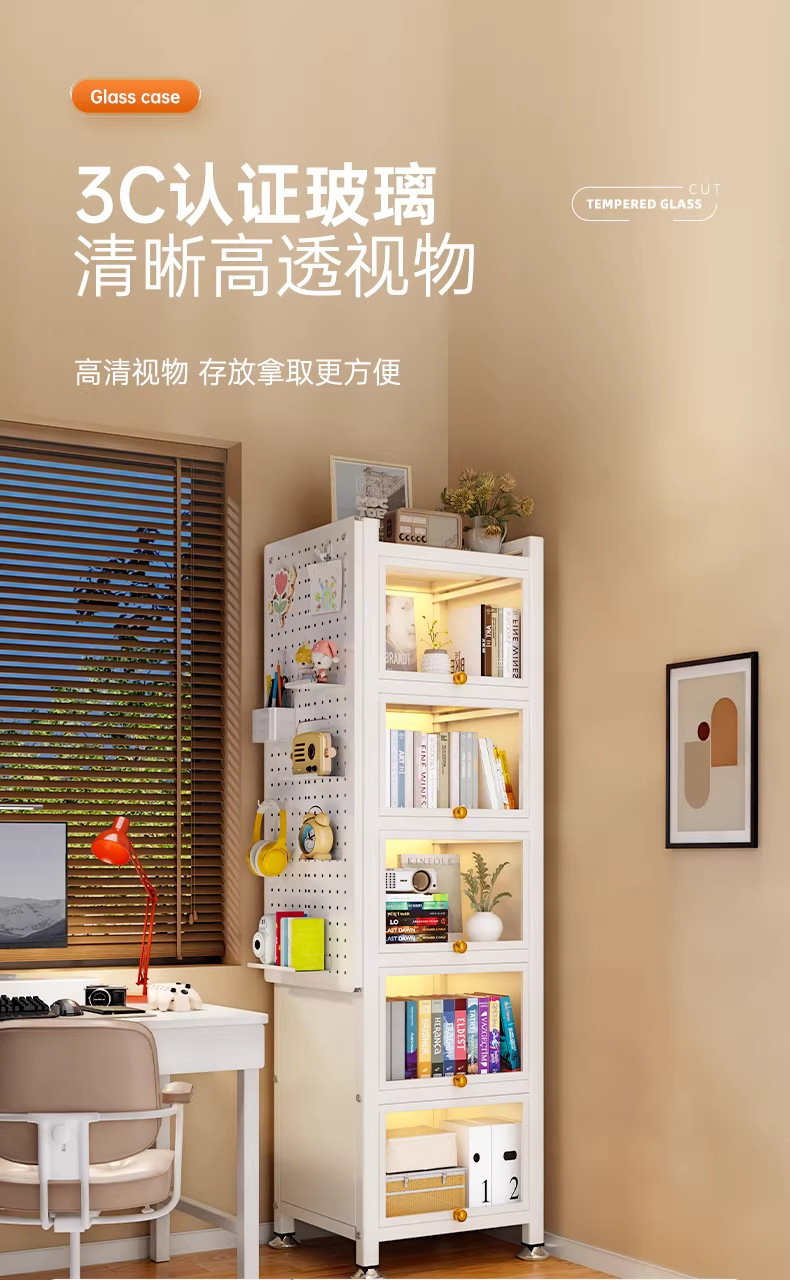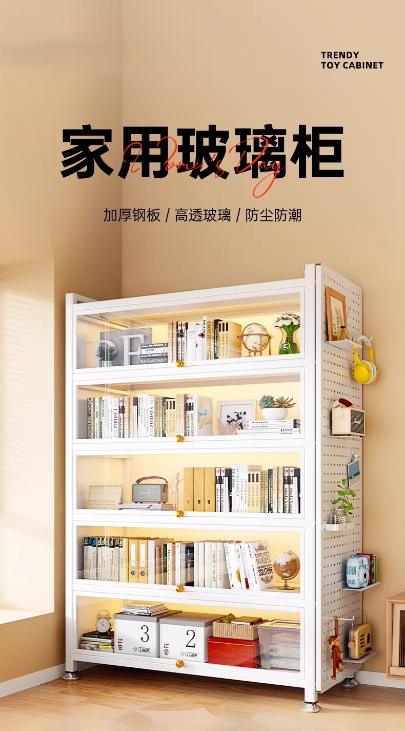유리문이 있는 Manou 강철 책장, 방진 책장, 거실 바닥에서 천장까지 이어지는 다층 수납 캐비닛, 철제 손으로 만든 디스플레이 캐비닛