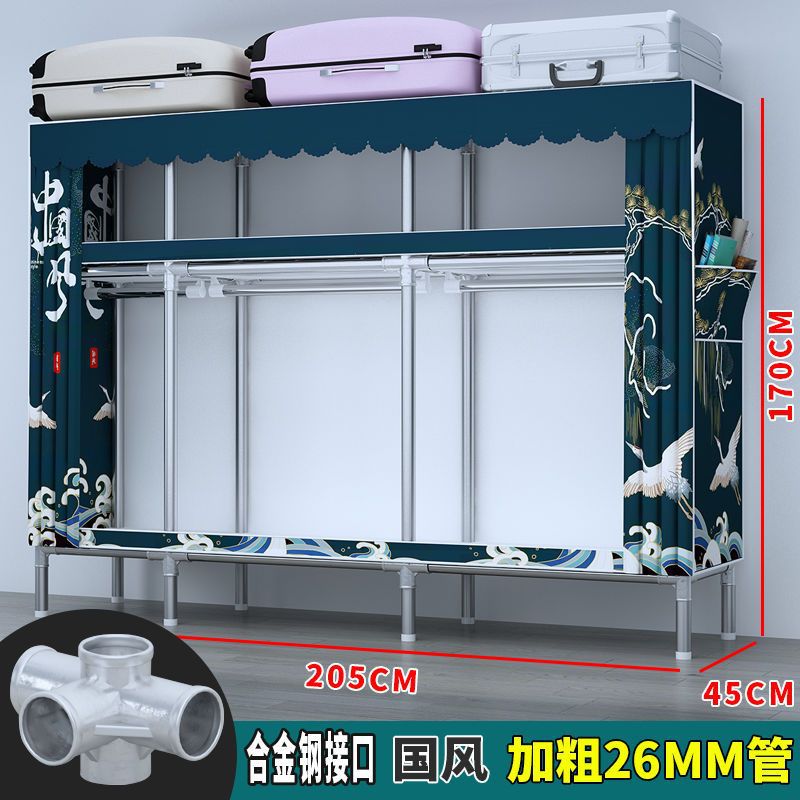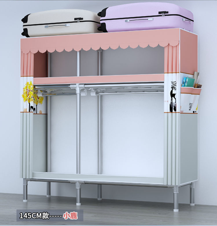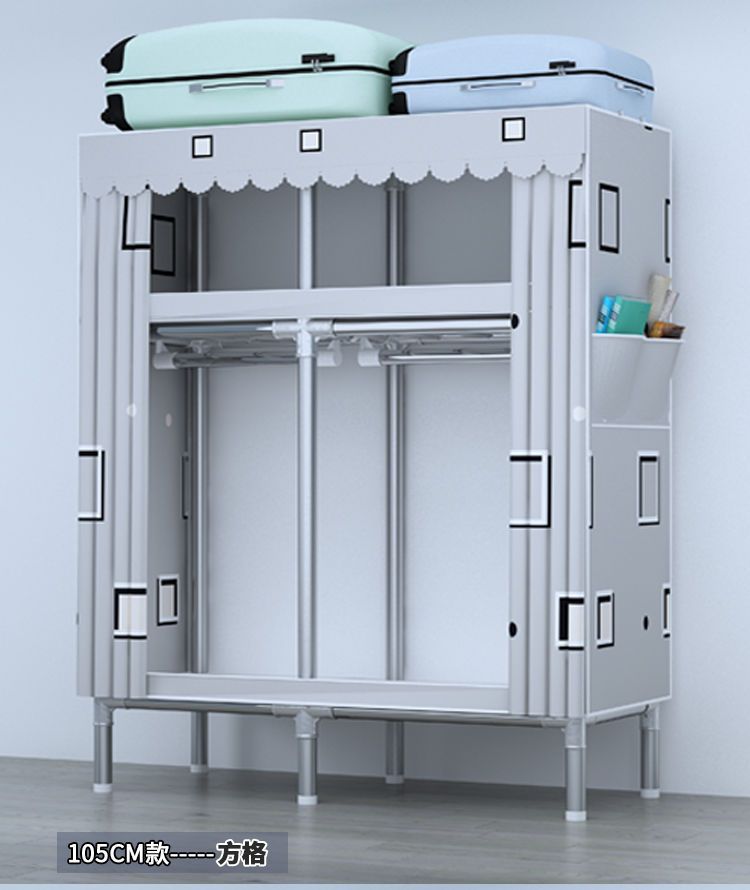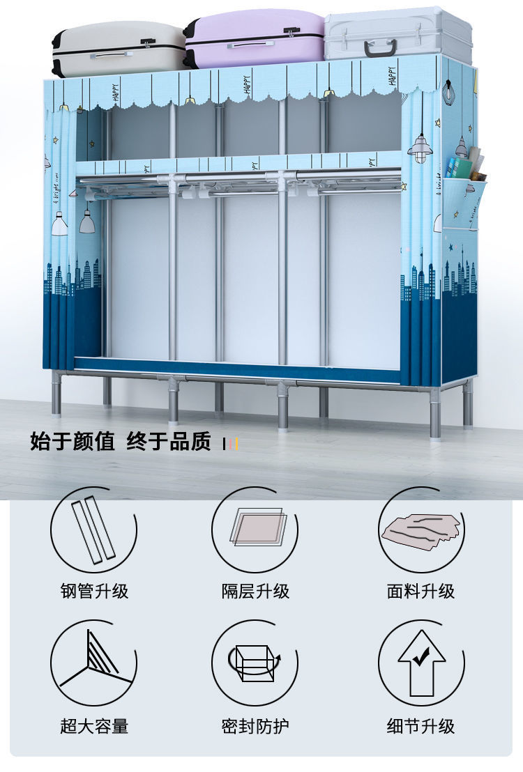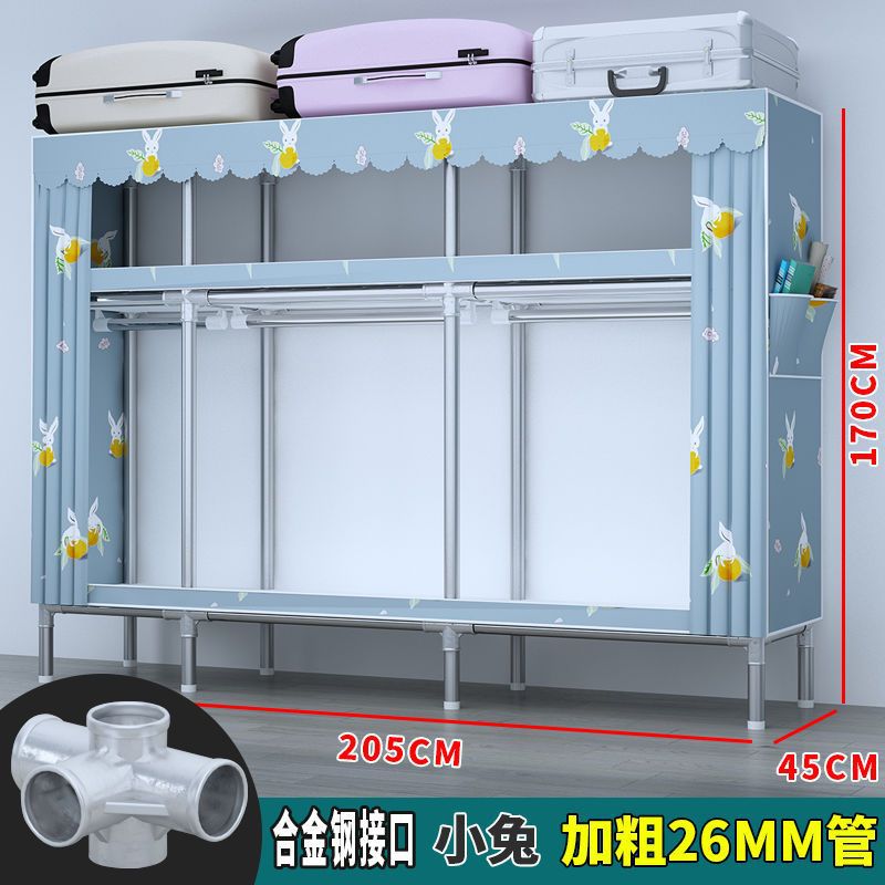 간단한 옷장 전체 강철 프레임 두꺼운 천 옷장 홈 침실 임대 옷장 조립 보관 캐비닛
