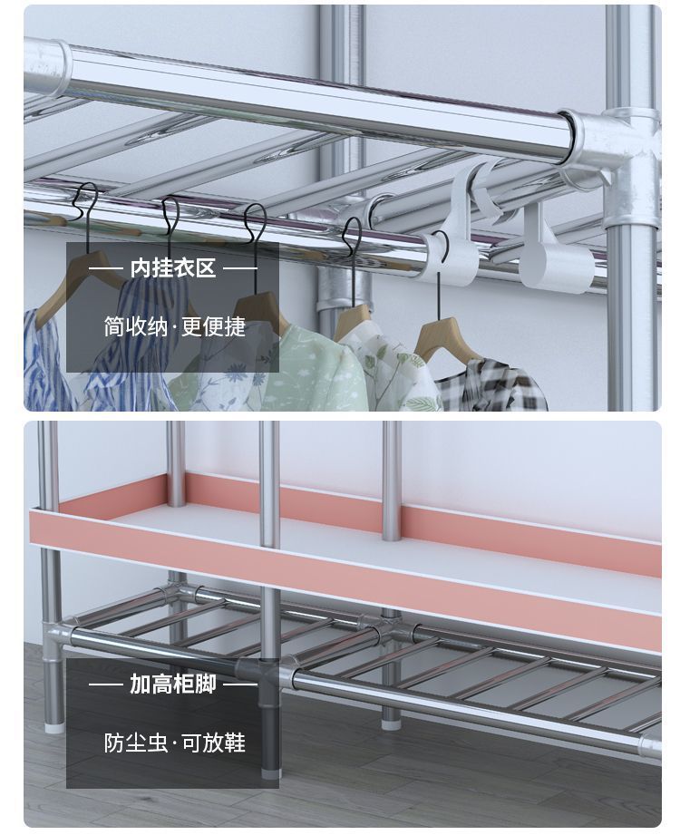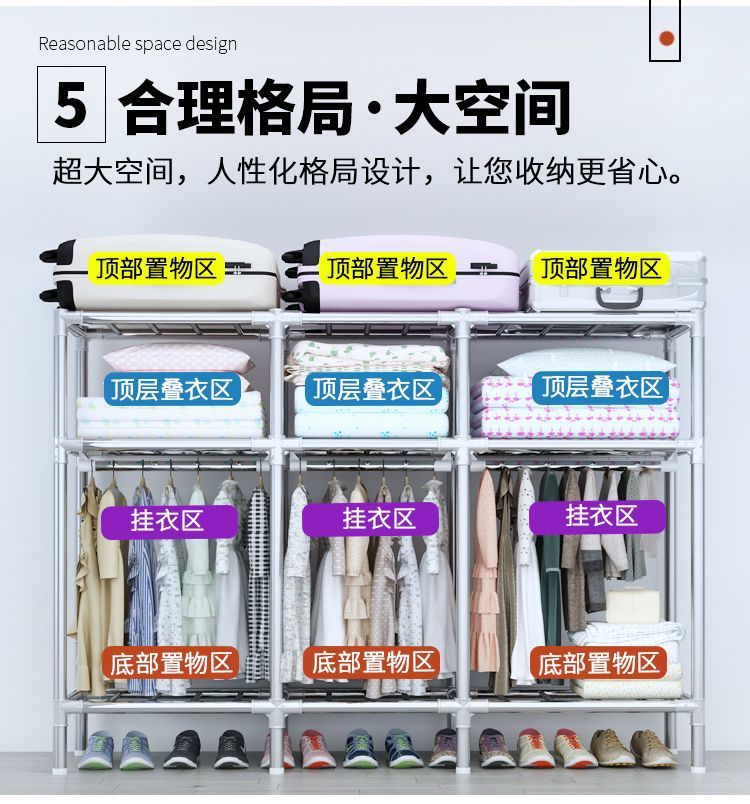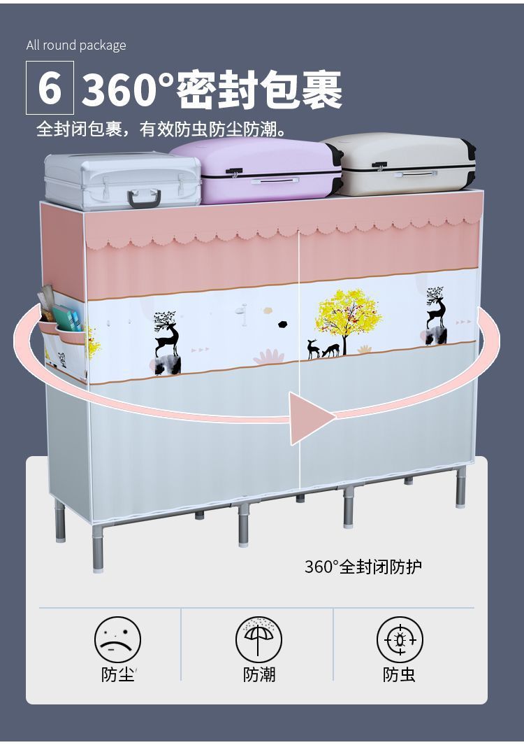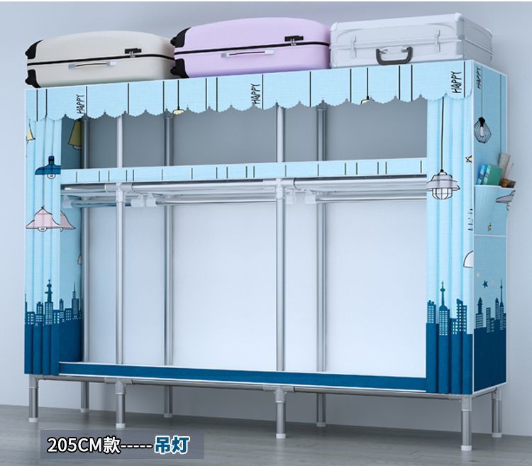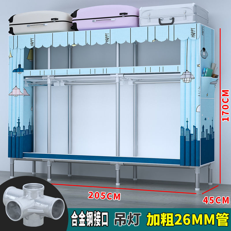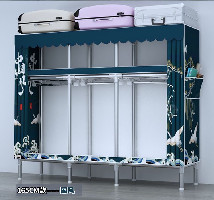 간단한 옷장 전체 강철 프레임 두꺼운 천 옷장 홈 침실 임대 옷장 조립 보관 캐비닛
