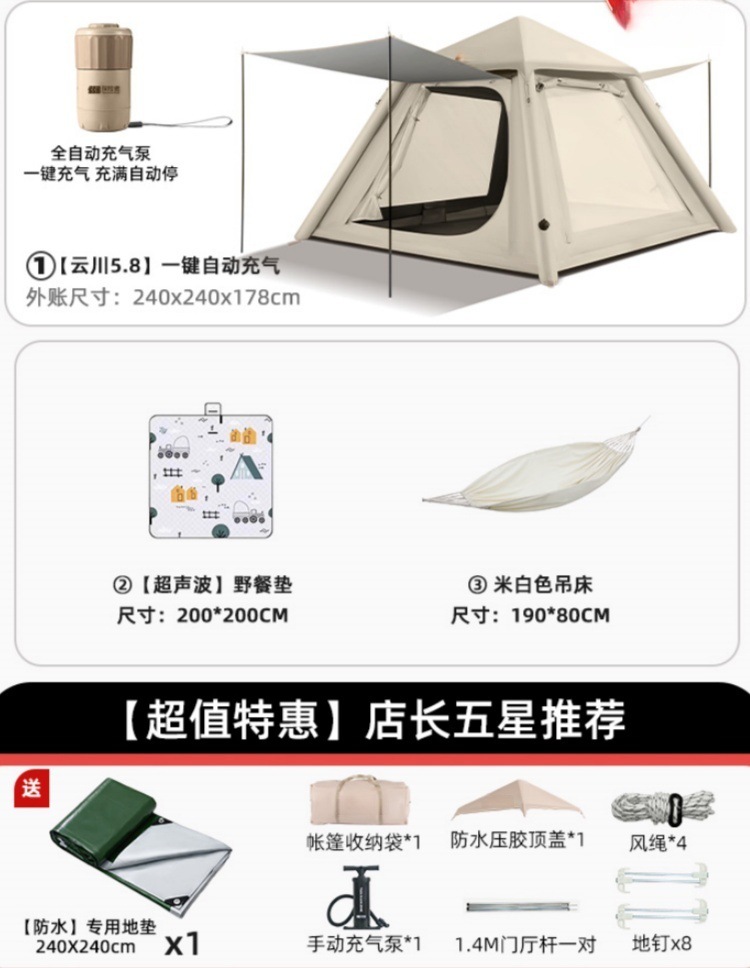 자동 풍선 텐트 야외 가정용 휴대용 접이식 캠핑 밤새 캠핑 장비 두꺼운 방수 풀 세트스토어 가기