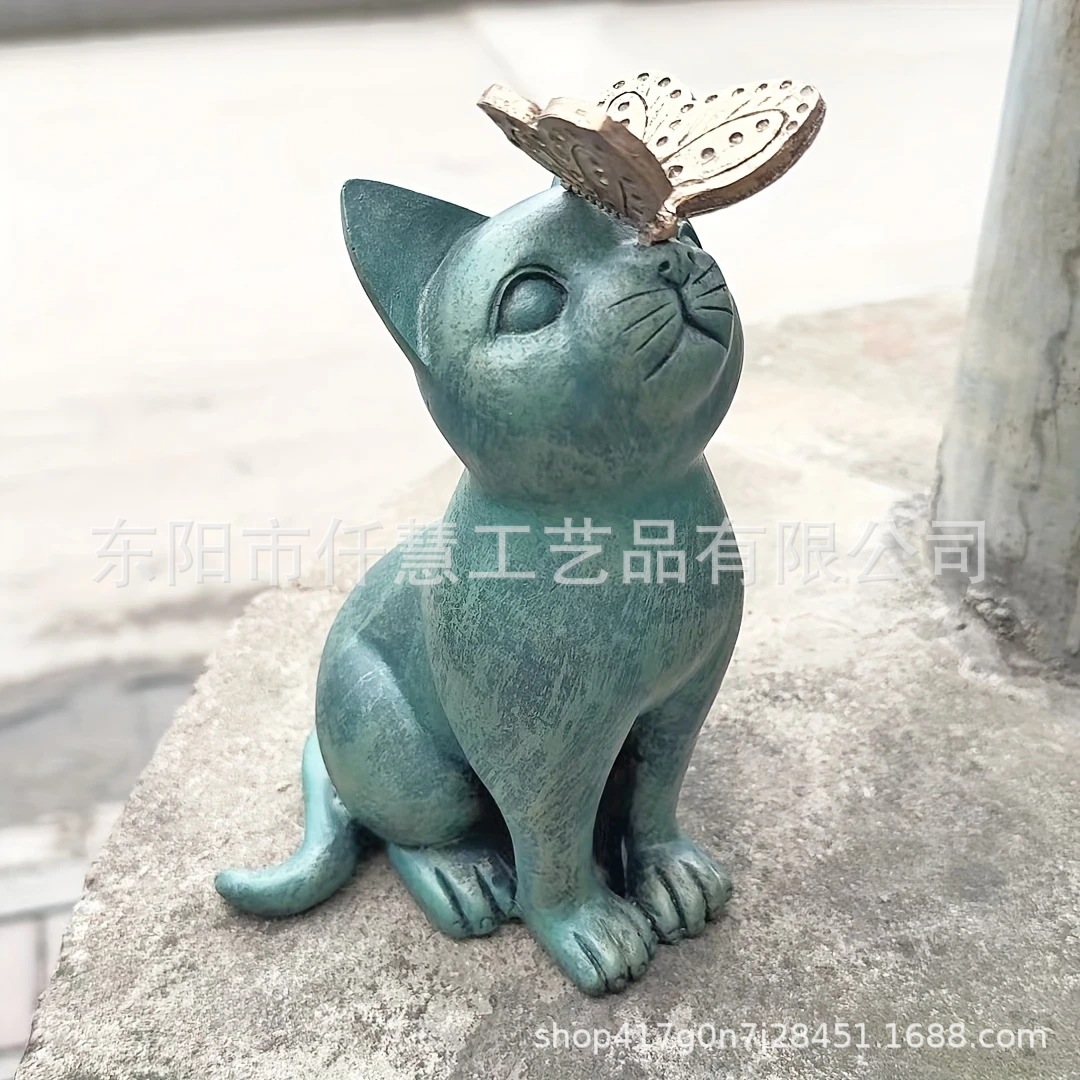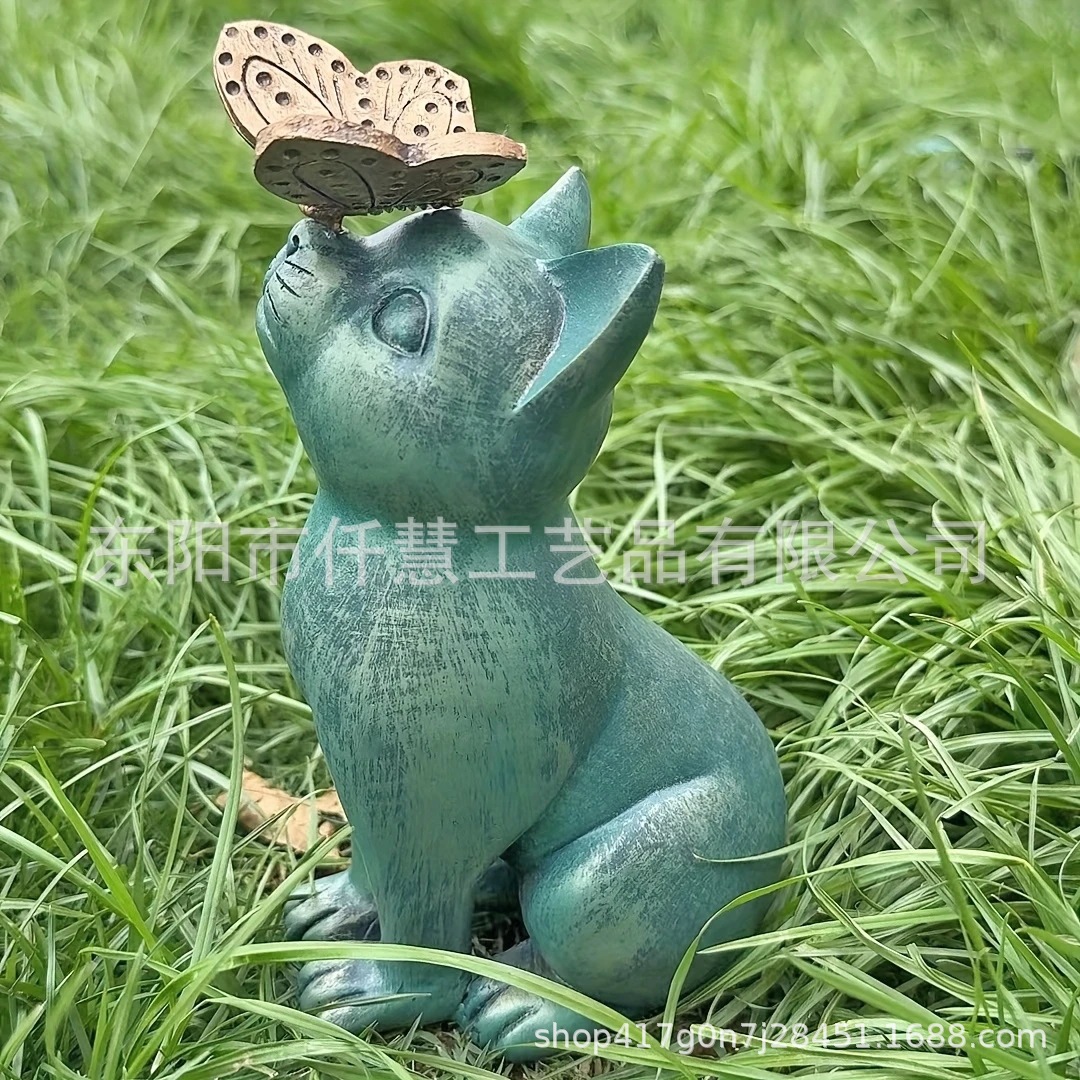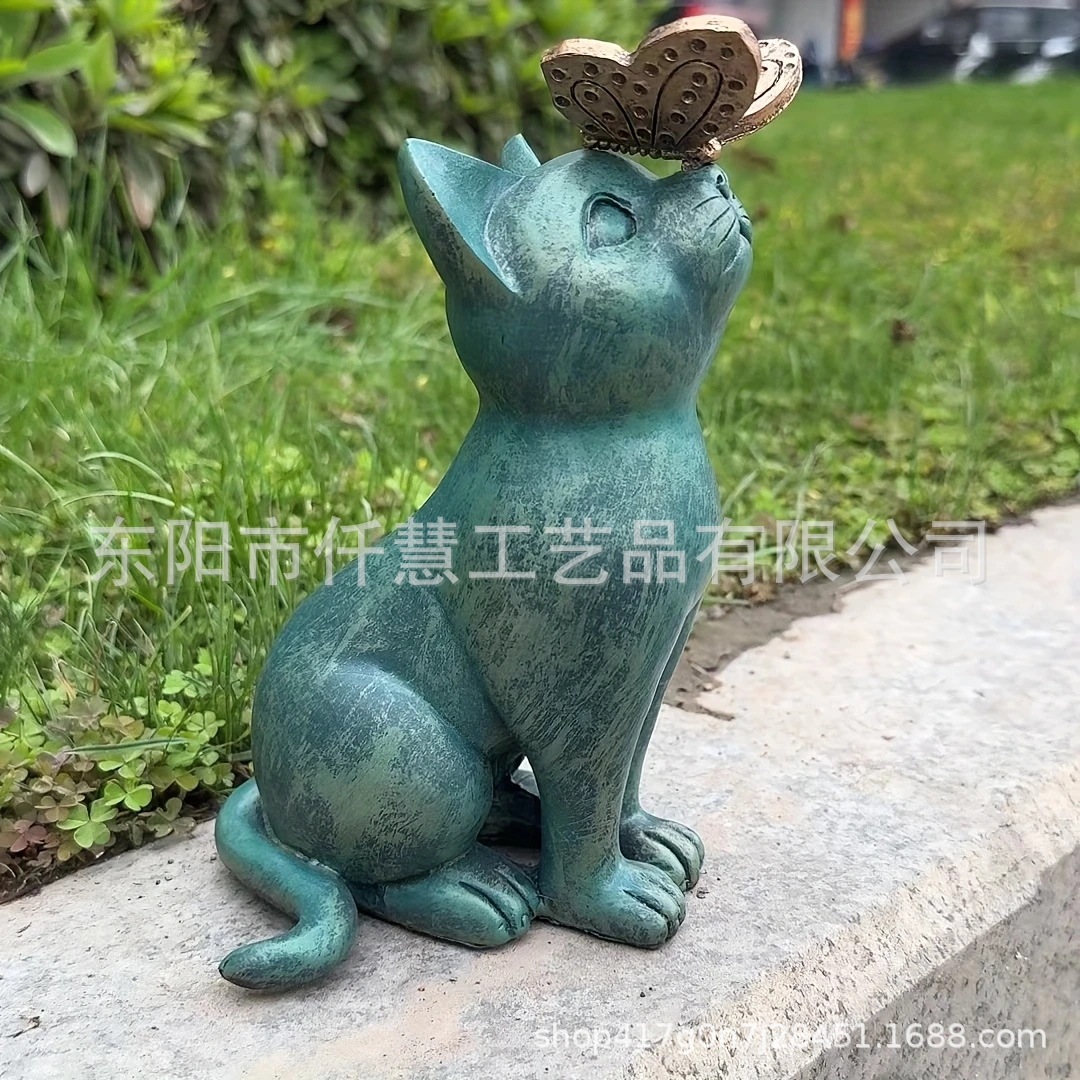 국경 간 독립 웹 사이트 나비가있는 새로운 귀여운 장식 호기심 고양이 실내 및 실외 작은 동상 수지 장식품스토어 가기