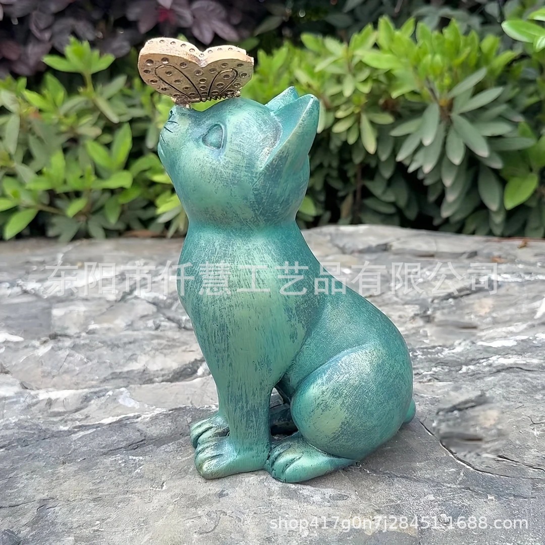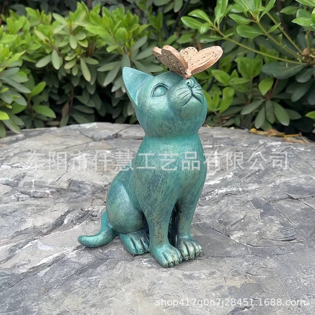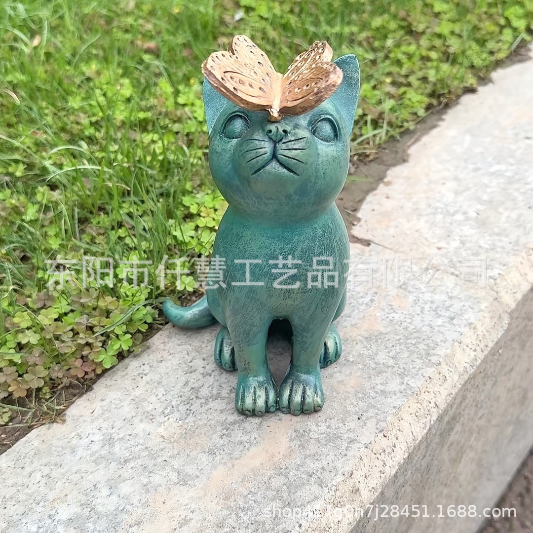 국경 간 독립 웹 사이트 나비가있는 새로운 귀여운 장식 호기심 고양이 실내 및 실외 작은 동상 수지 장식품스토어 가기