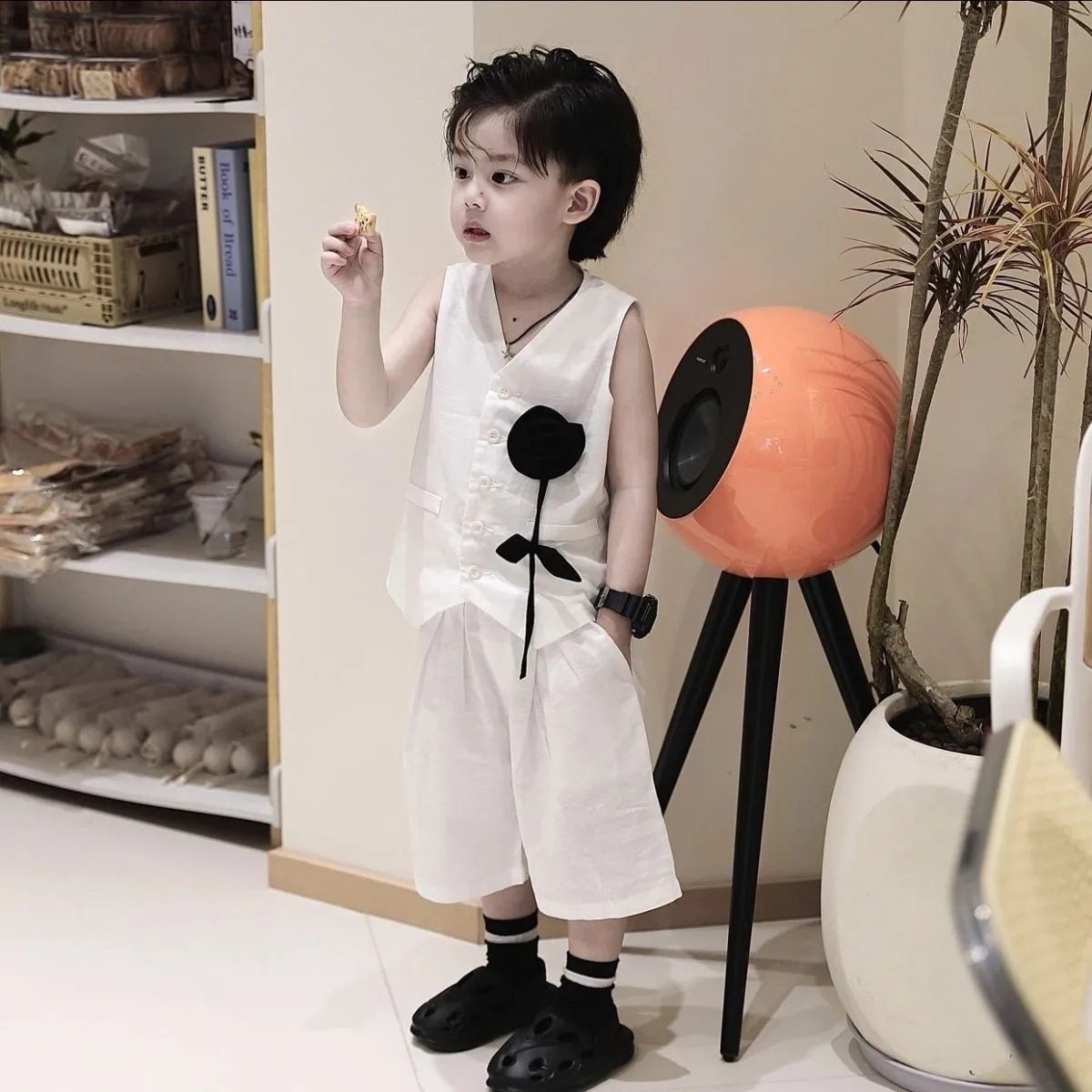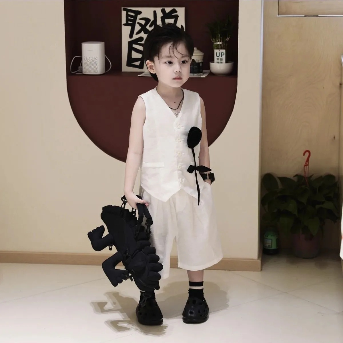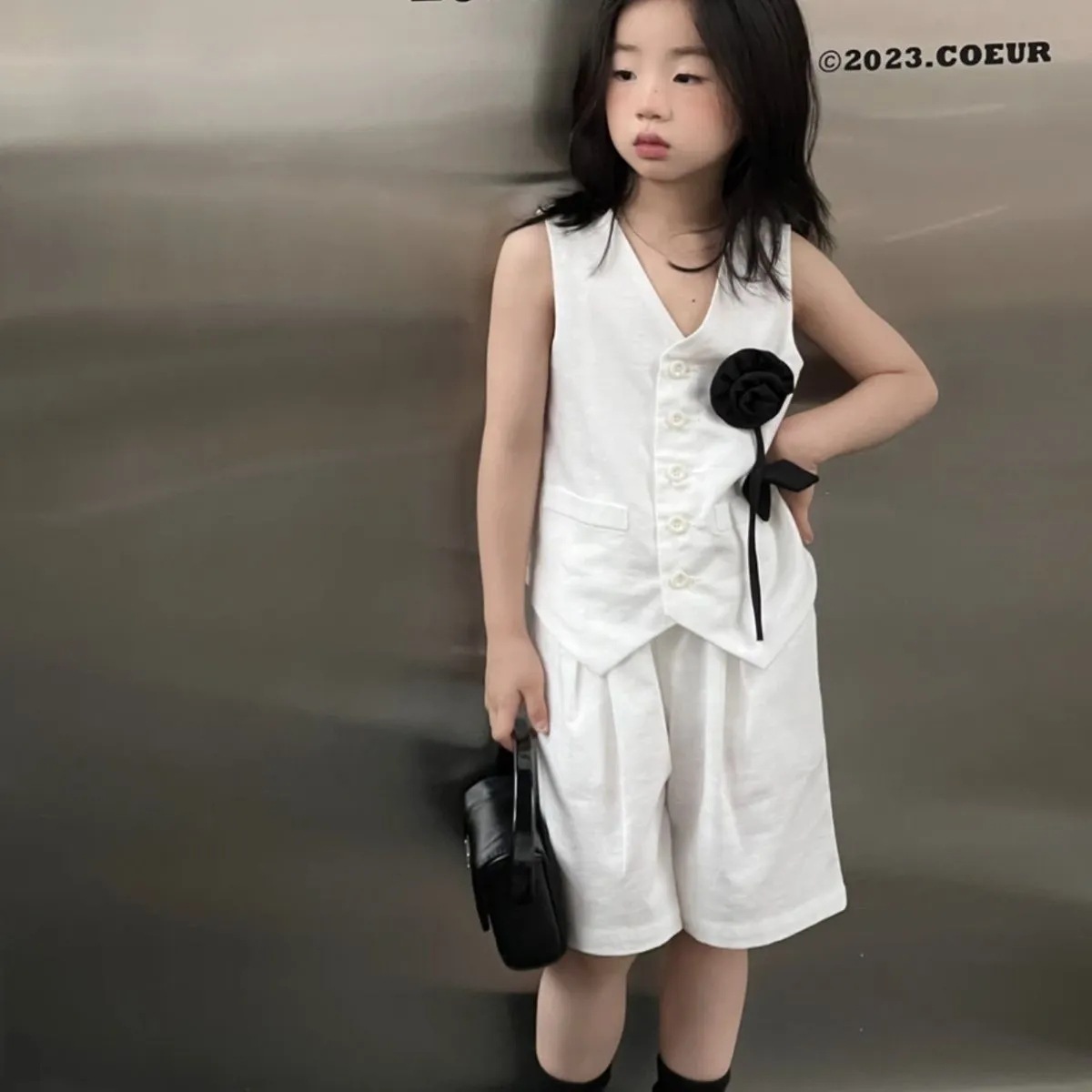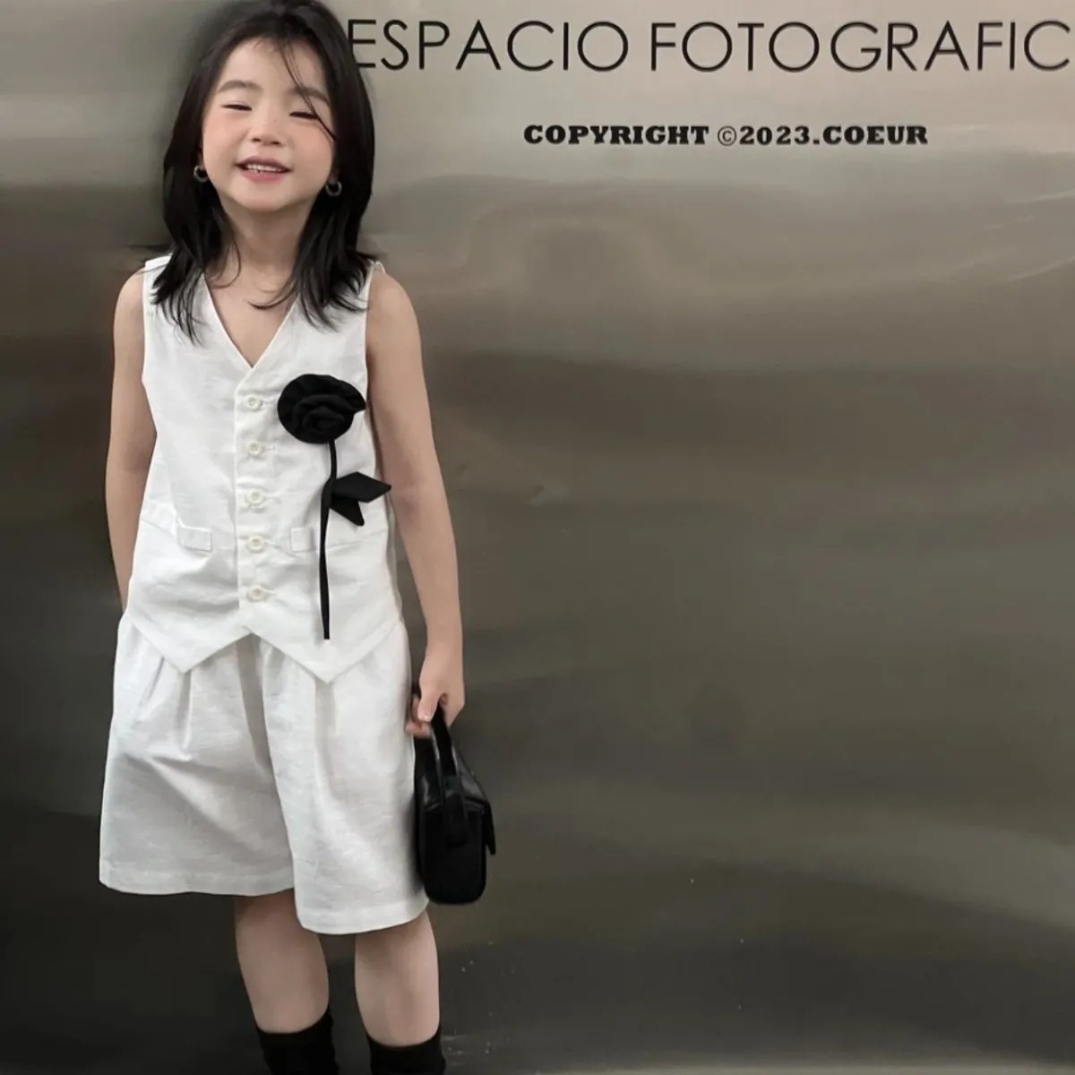 조끼 정장 한국어 버전 2024 여자 여름 민소매 새로운 어린이 조끼 기질 드레스 투피스 세트