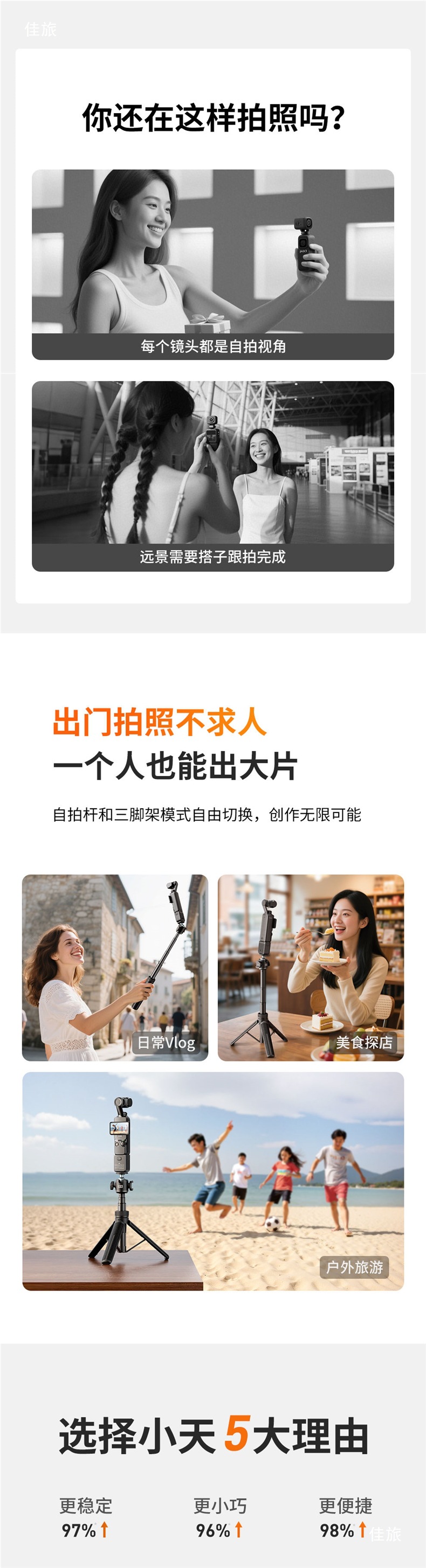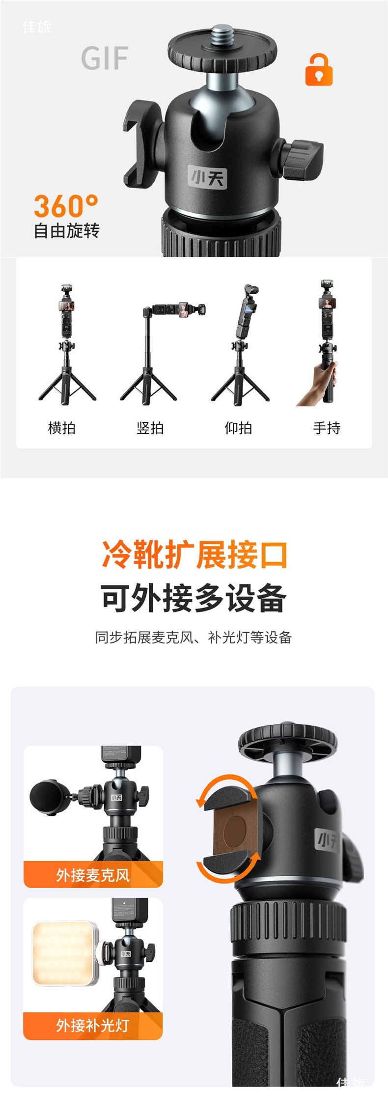 DJI DJI Pocket3 삼각대 확장 브래킷에 적합 휴대용 셀카봉 카메라 텔레스코픽 삼각대스토어 가기