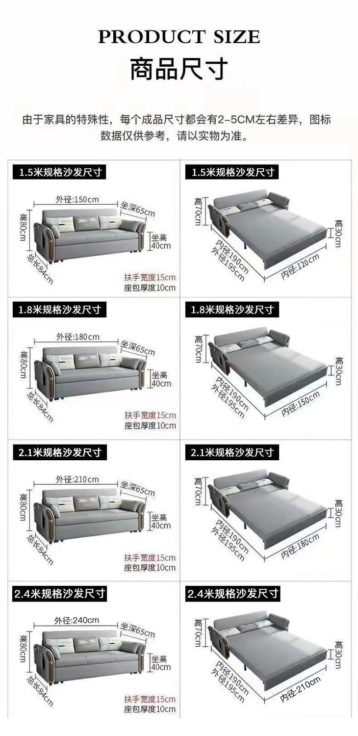 2024 새로운 다기능 접이식 이중 목적 소파 침대 기술 천 작은 아파트 거실 침실 접이식 소파 침대