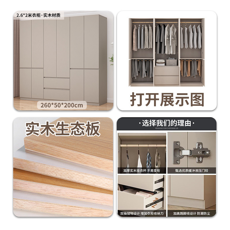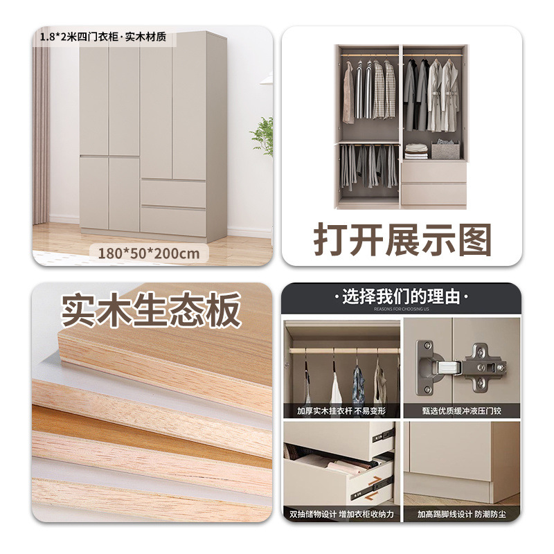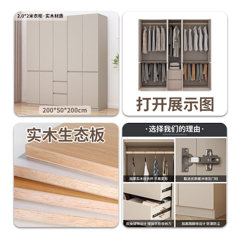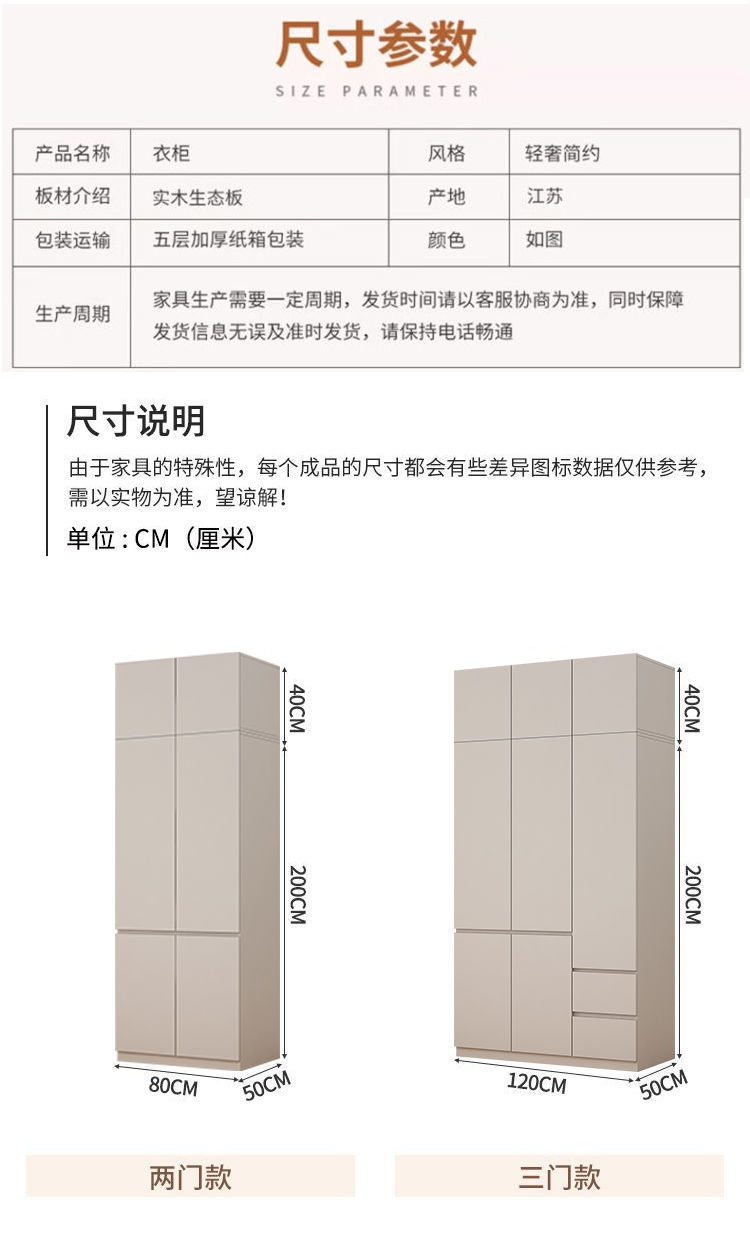 가벼운 고급 옷장 Foshan 가구 옷장 홈 침실 전체 단단한 나무 임대 작은 아파트 보관 설치가 필요 없음스토어 가기
