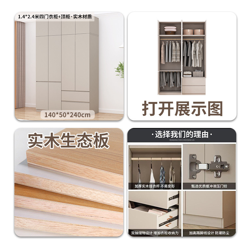 • 1.4* 2.8m 도어 옷장 + 상단 캐비닛/단단한 목재 소재