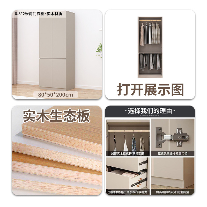 • 0.8*2m 2도어 옷장/단단한 목재 소재
