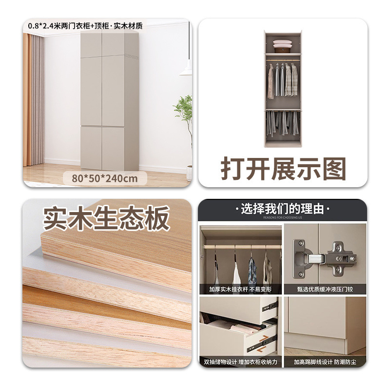 • 0.8*2.4m 2도어 옷장 + 상단 캐비닛/단단한 목재 패널
