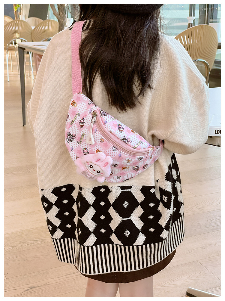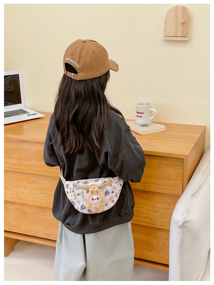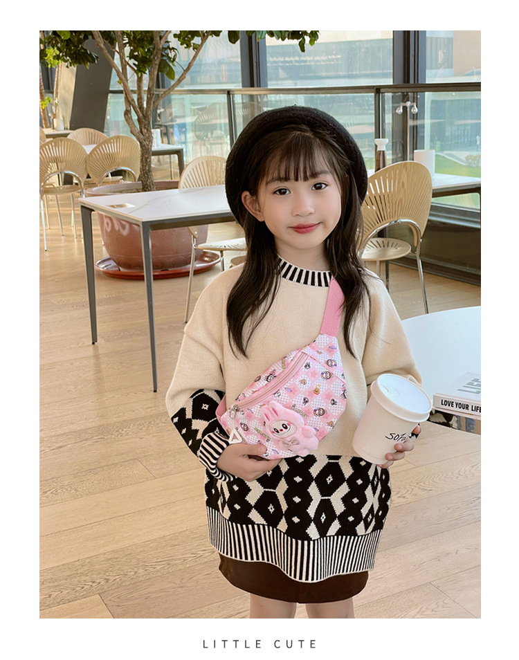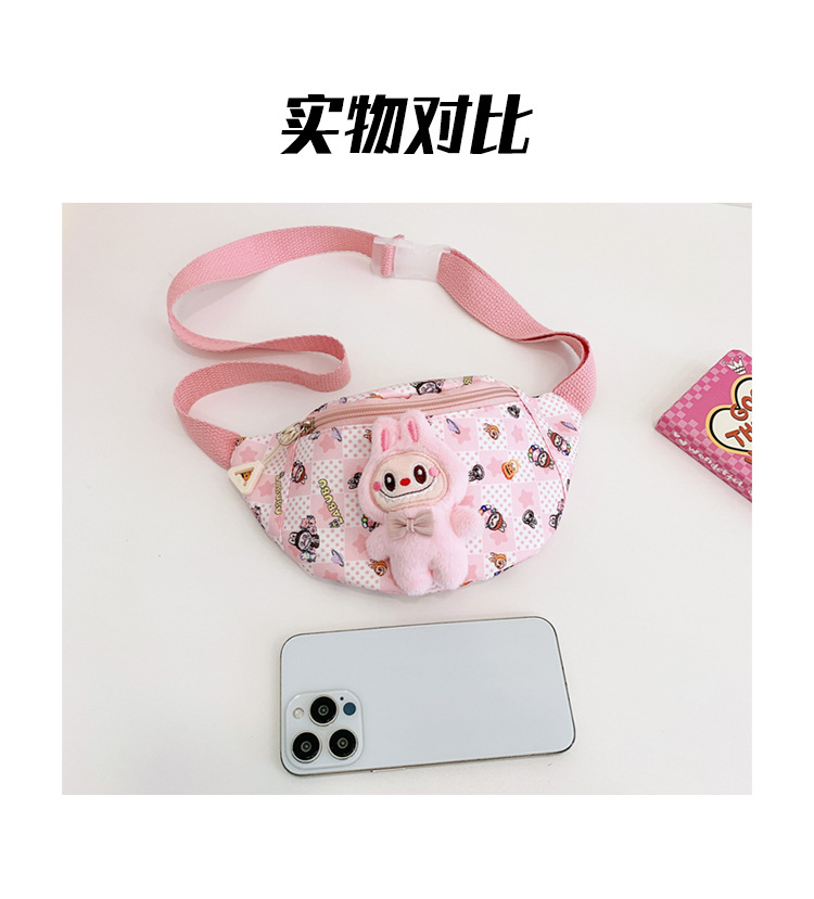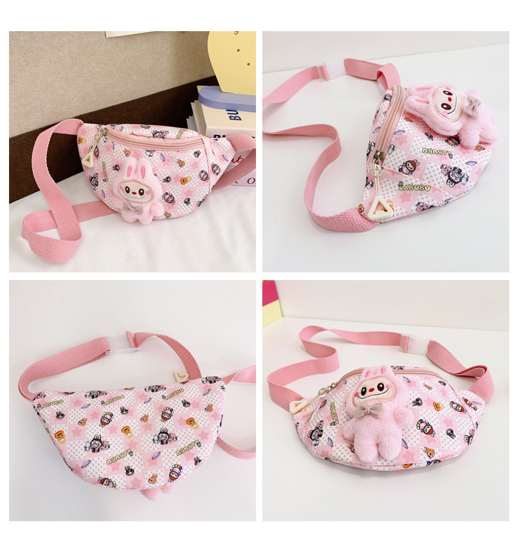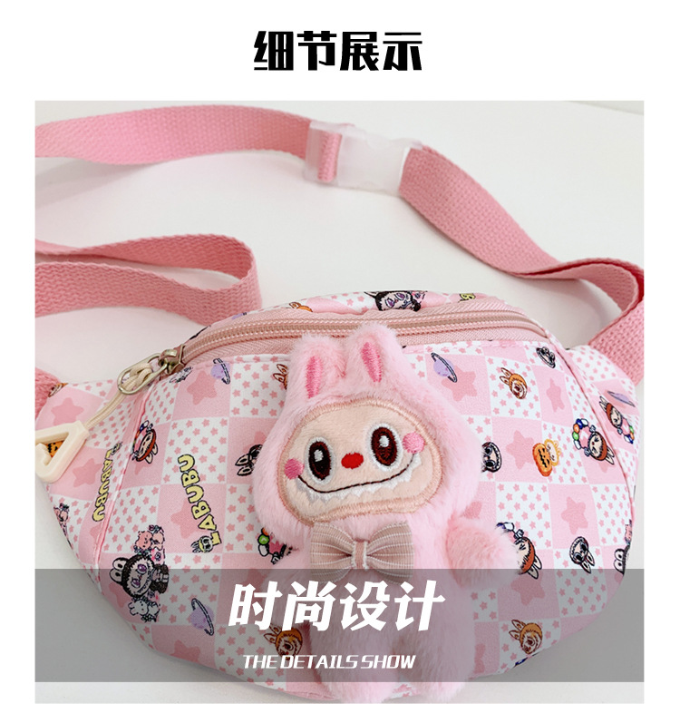새로운 만화 Labubu 어린이 가슴 가방 소녀 Crossbody 가방 캐주얼 다목적 허리 가방 동전 어깨 배낭 도매