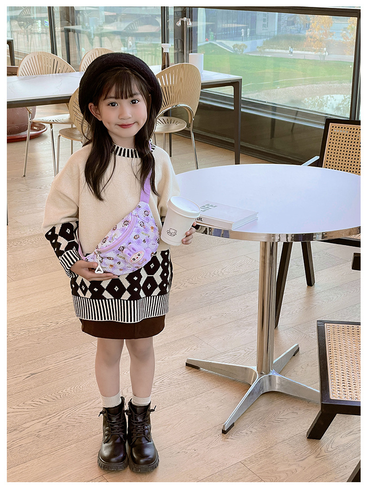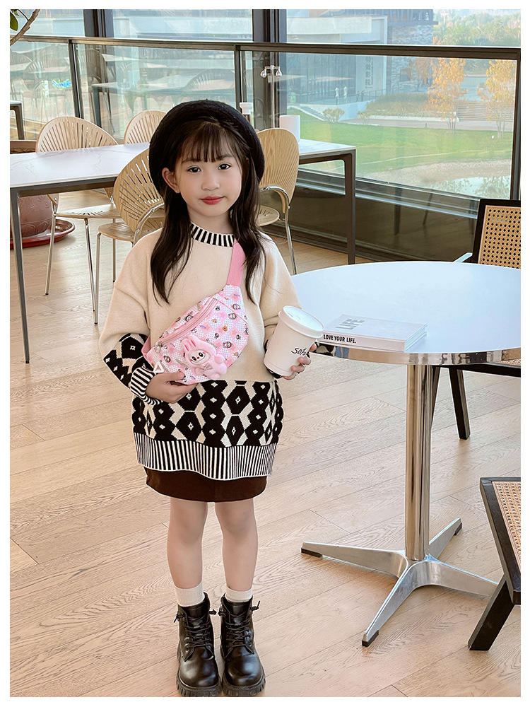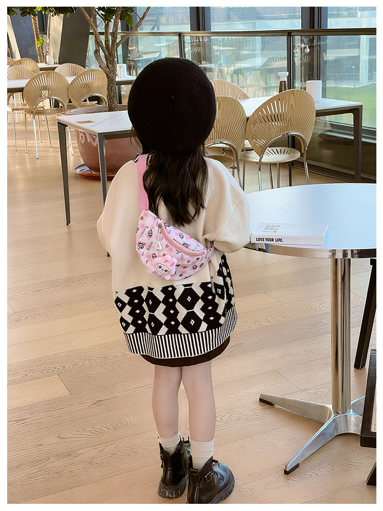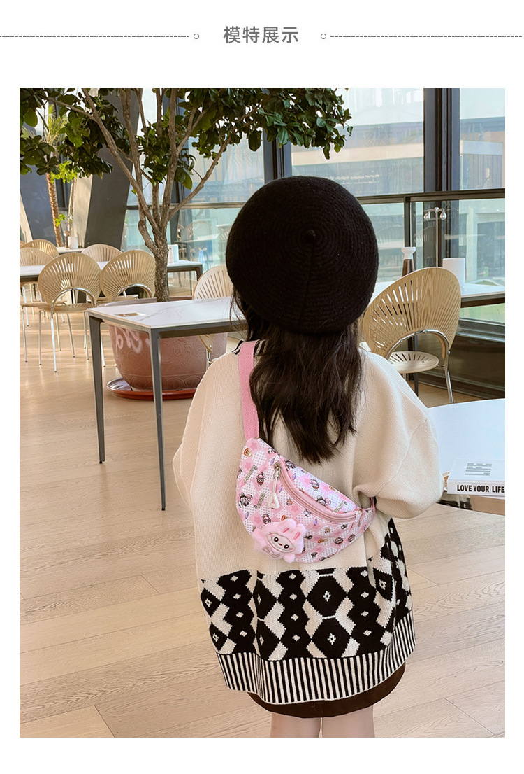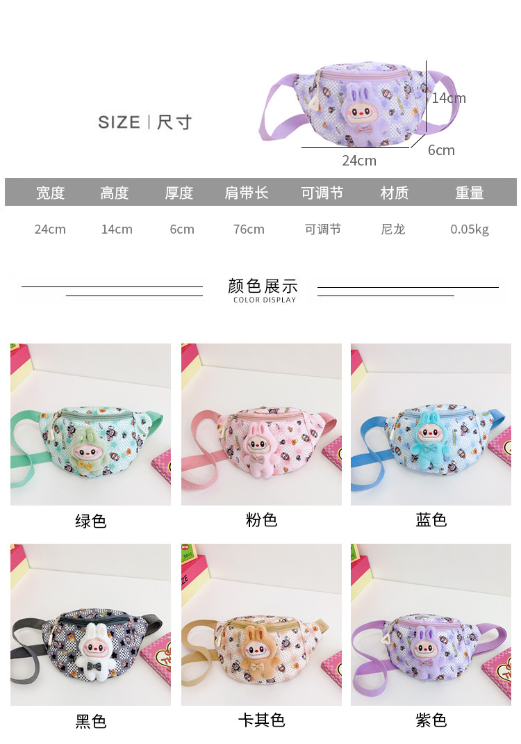 새로운 만화 Labubu 어린이 가슴 가방 소녀 Crossbody 가방 캐주얼 다목적 허리 가방 동전 어깨 배낭 도매