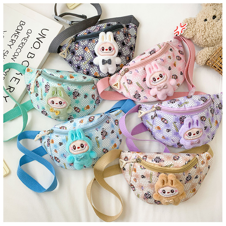 새로운 만화 Labubu 어린이 가슴 가방 소녀 Crossbody 가방 캐주얼 다목적 허리 가방 동전 어깨 배낭 도매스토어 가기
