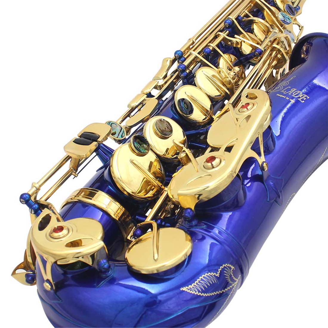 产品名称:SLADE雷德中音萨克斯降E调黄铜管体雕花鲍鱼壳按键
